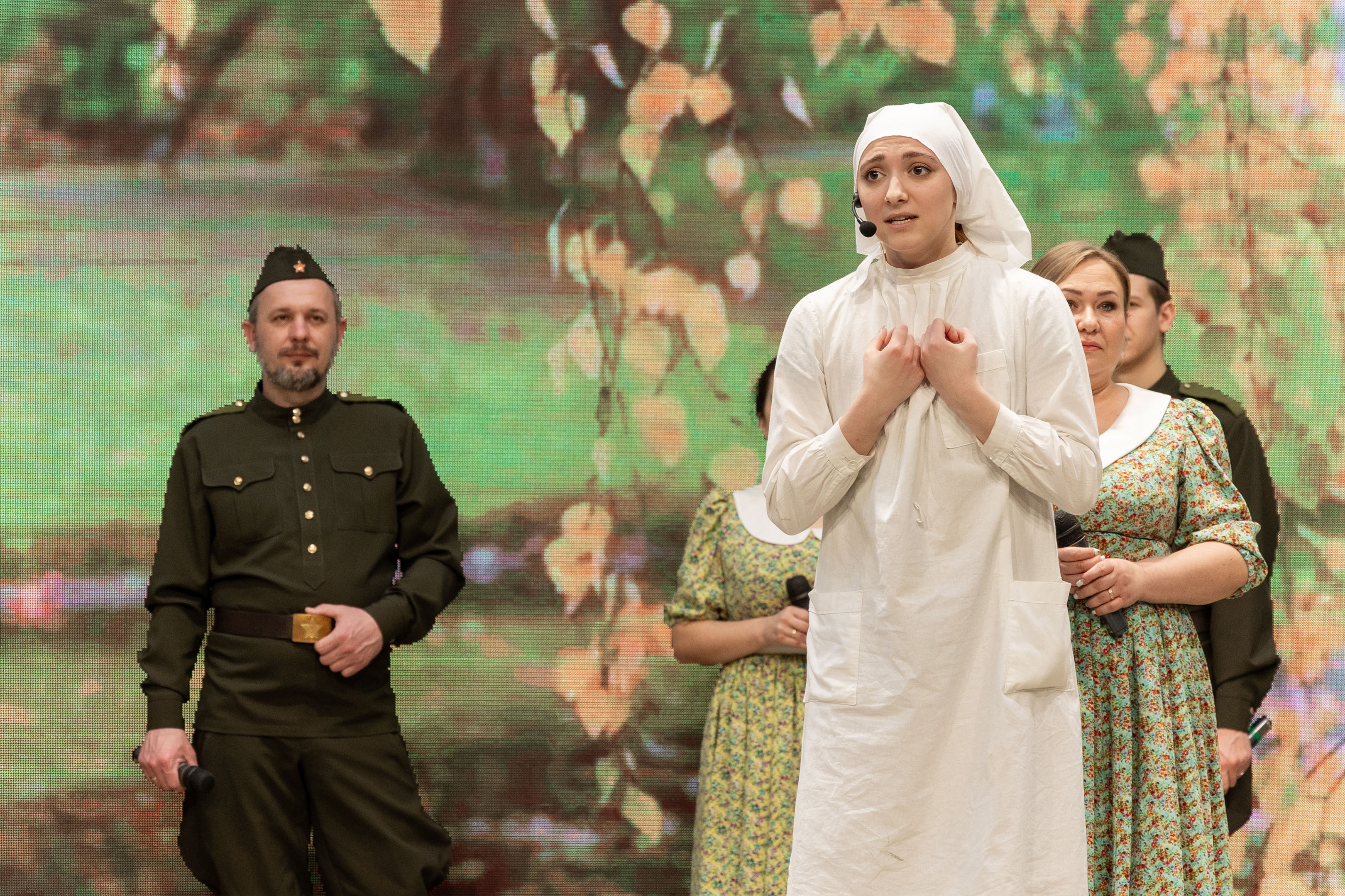 Дети с замиранием сердца слушали «радостное» письмо матери (арт. Наталья Денисова), написанное сыну из блокадного Ленинграда. В оккупированном городе люди разбивали огороды и сажали цветы. Это было последнее письмо матери, написанное за неделю до её смерти. До слёз тронул рассказ молоденькой санитарочки госпиталя (арт. Эвелина Слободянюк), чей первый поцелуй был подарен любимому лейтенанту. Мёртвому лейтенанту…