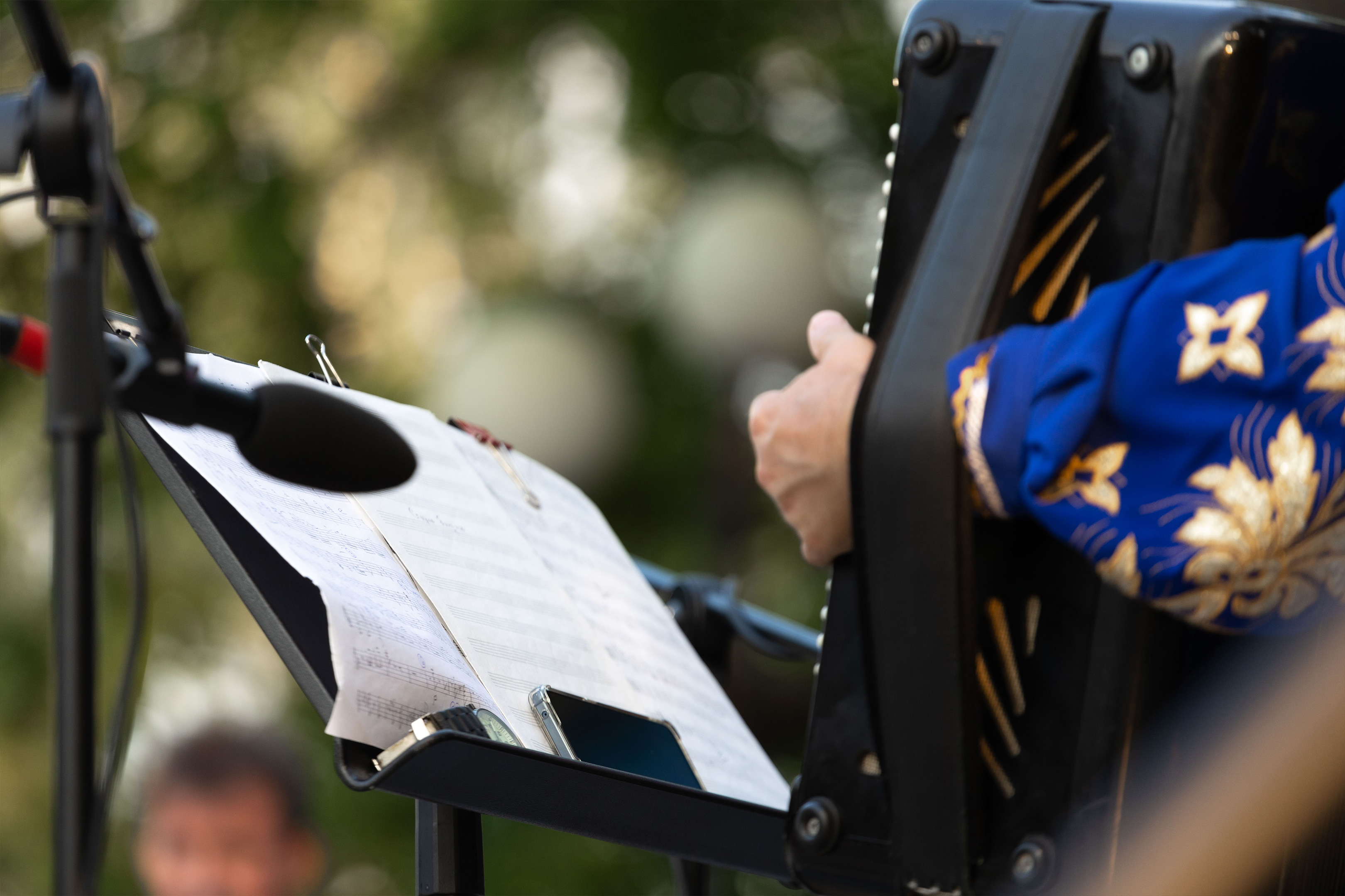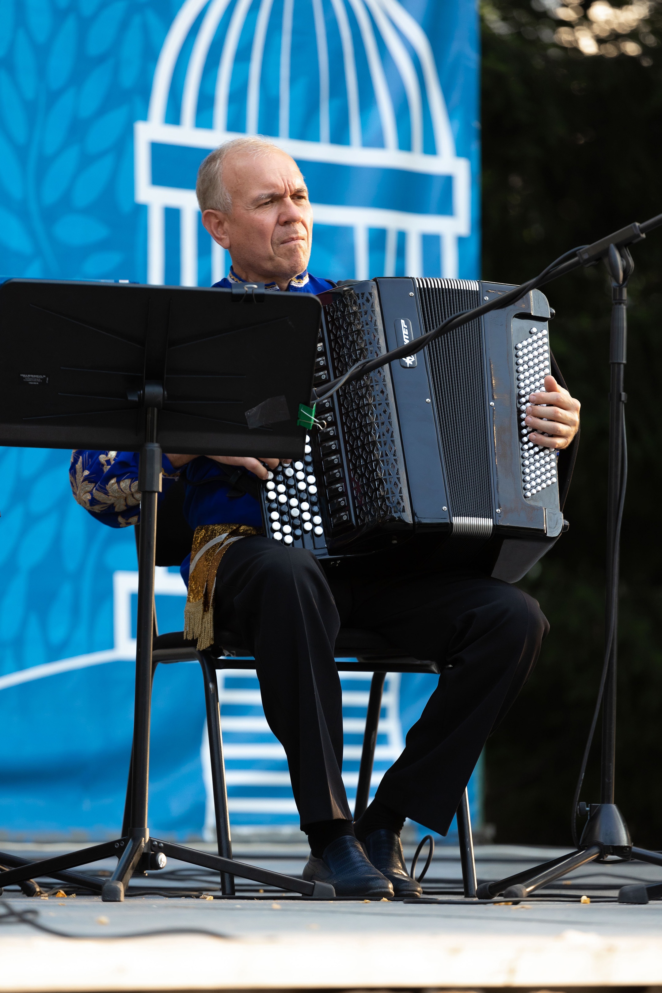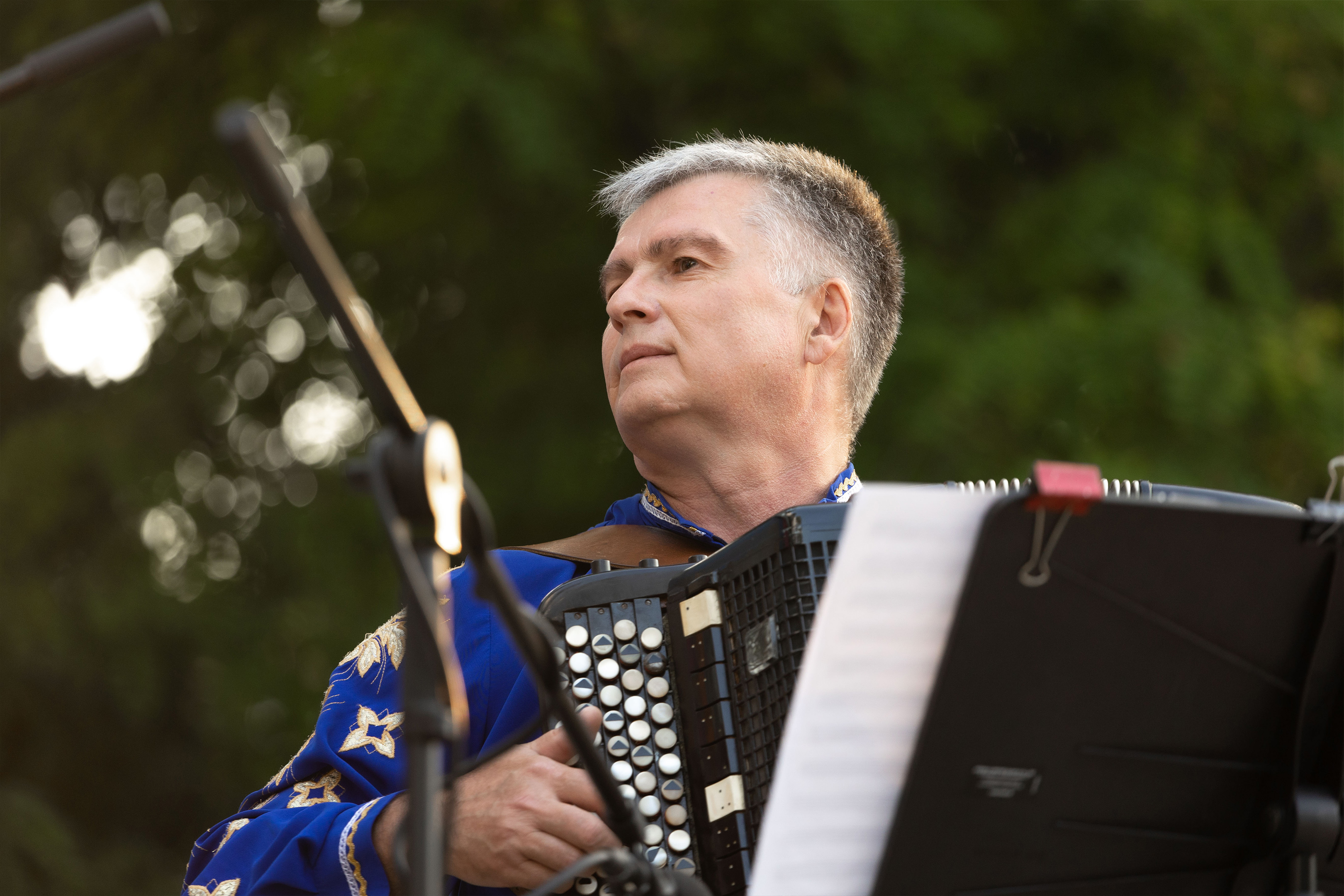 В субботу в Городском саду лучшие места под сбавившим обороты вечерним солнцем заняли любители русской инструментальной музыки. Большая удача – услышать оркестровую группу «Родника» в формате сольного концерта! Чтобы сполна оценить виртуозное мастерство каждого музыканта, изящество и остроумие аранжировок, ни с чем не сравнимый тембр русских народных инструментов!