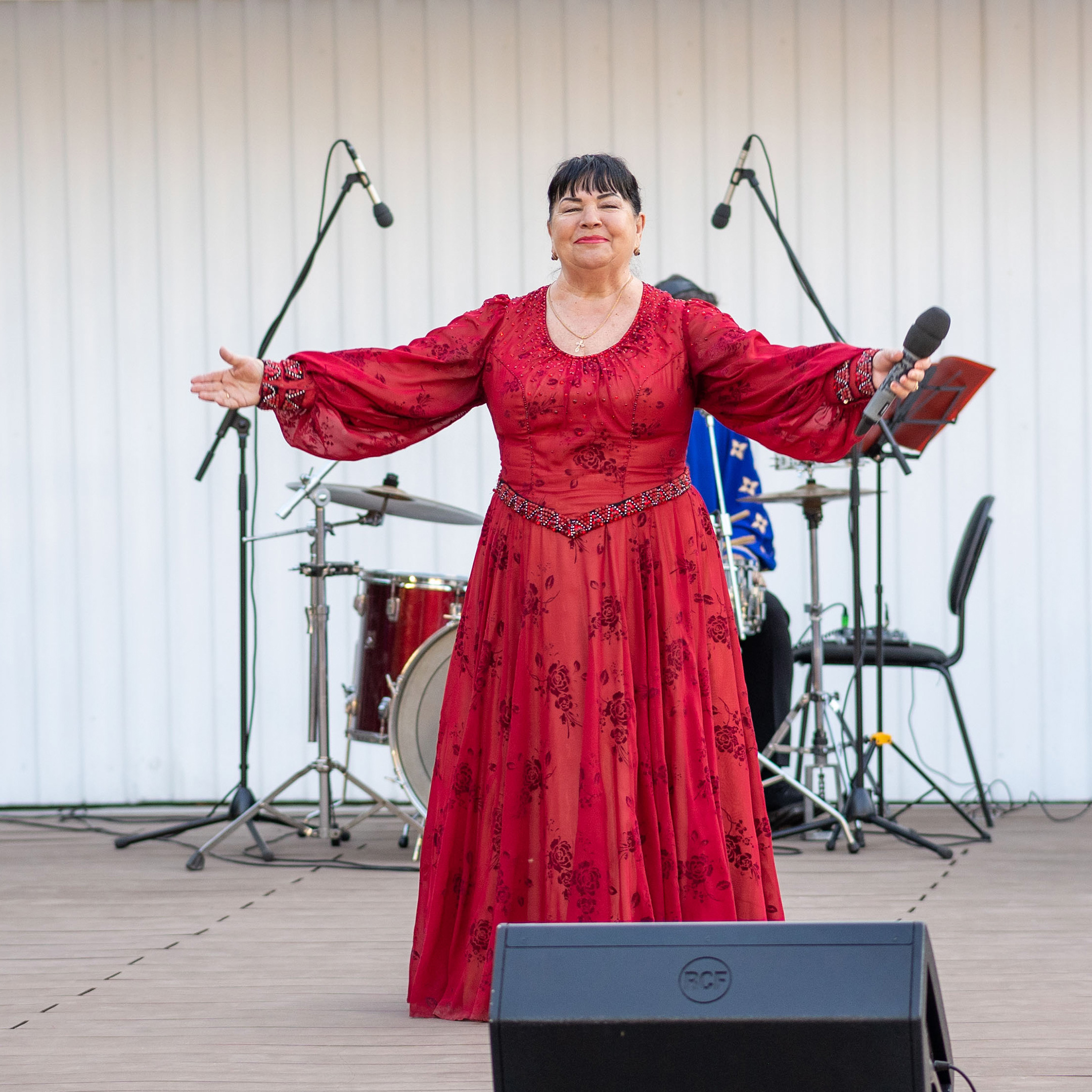 Выступление народной артистки России Раисы Гончаровой и ансамбля «Родник» в Летнем театре Дворца Искусств – всегда ожидаемое событие. Между артистами и зрителями возникает нотка особой сердечности, словно встретились родственные души.