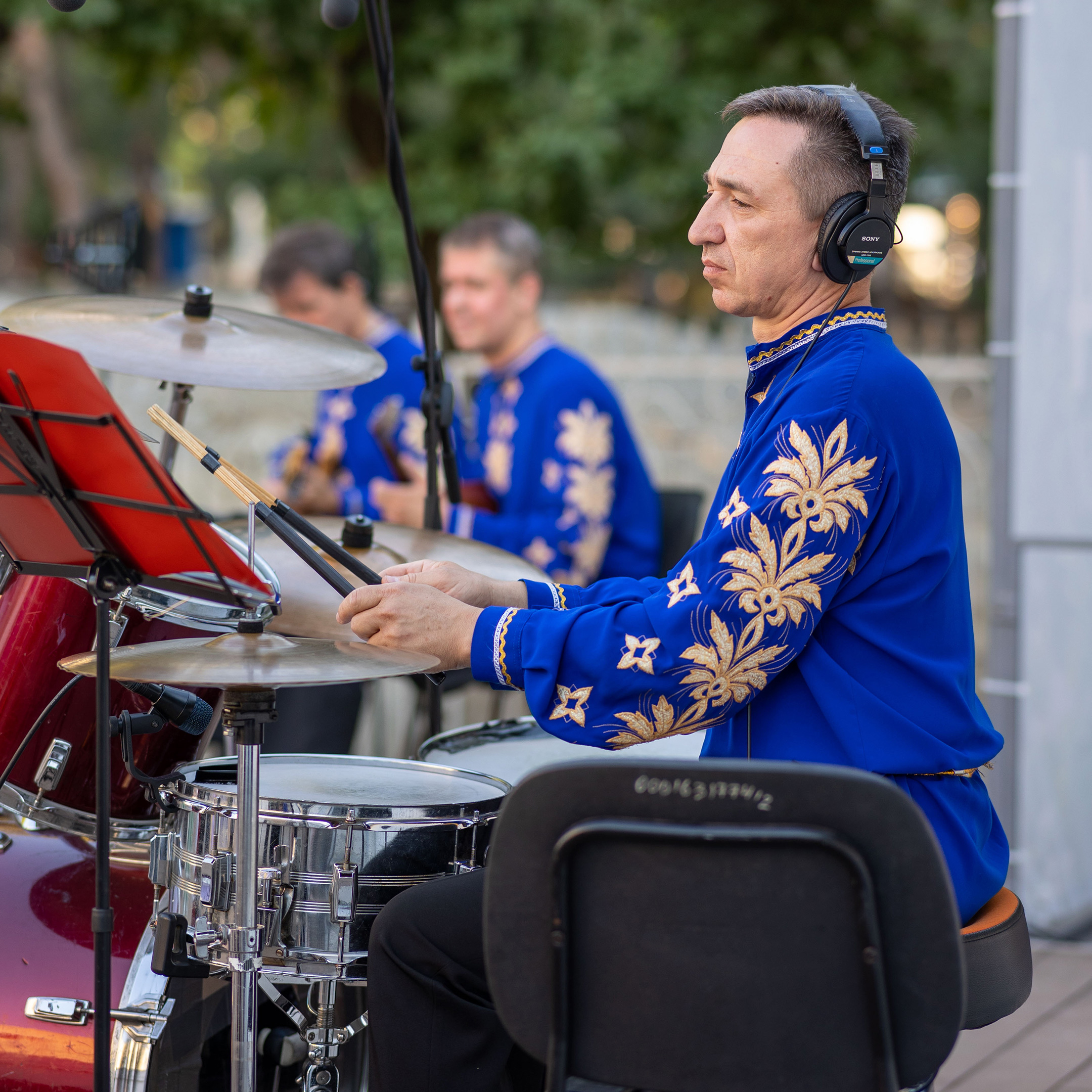 Прозвучали патриотические песни и заводные плясовые, старинные казачьи и шуточные. Выступления солистов перемежалось виртуозными инструментальными номерами ансамбля в составе: музыкальный руководитель коллектива заслуженный работник культуры Кубани Владимир Рудой – баян, лауреат всероссийских конкурсов Александр Малышко – баян, лауреат всероссийских конкурсов Андрей Кибенко – балалайка, Павел Федоренко – бас-гитара. Партия ударных – заслуженный артист Краснодарского края Юрий Чернявский.