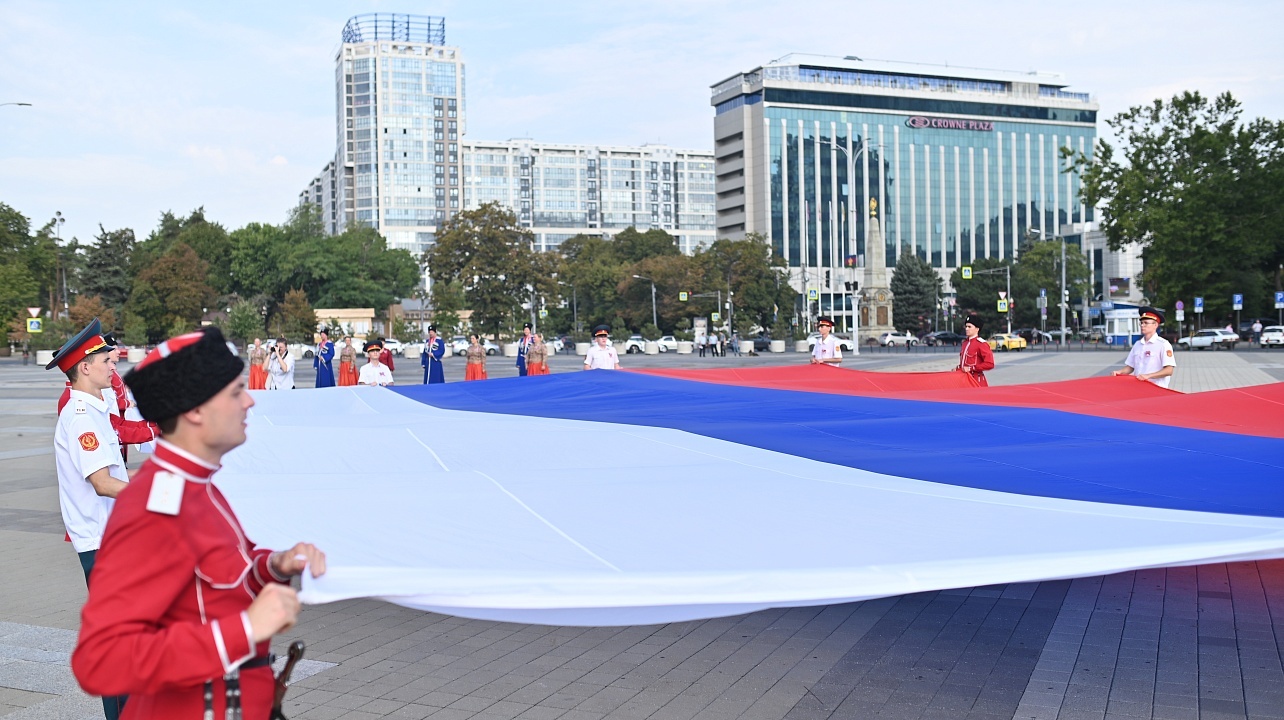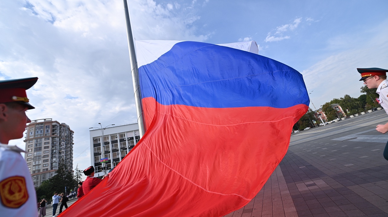 Сегодня под национальным флагом мы вместе пишем новейшую историю России: совершаем подвиги, демонстрируем выдающиеся научные, культурные и спортивные достижения. Бело-сине-красный стяг вдохновляет на самоотверженный труд, помогает достойно отвечать на вызовы времени.