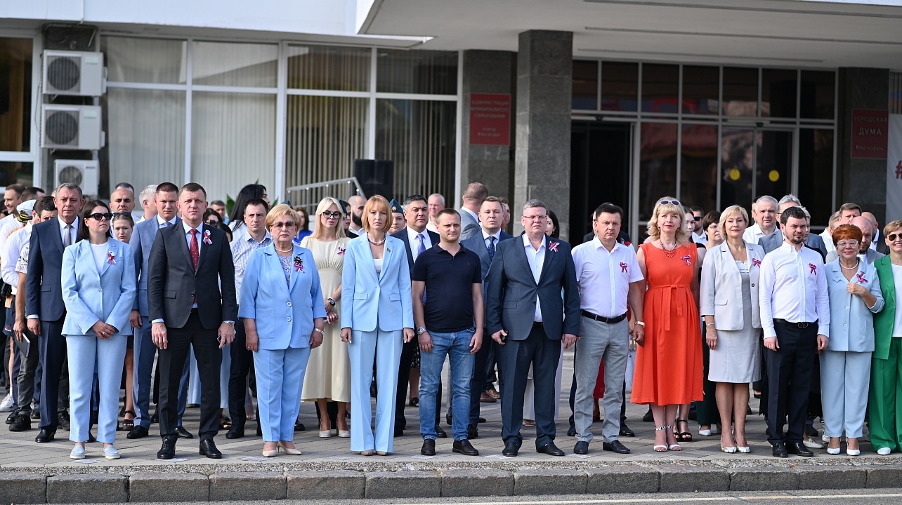 В церемонии приняли участие: почётный караул Кубанского казачьего войска, сборный городской отряд Поста № 1 города Краснодара, волонтёрские организации, общественность города.