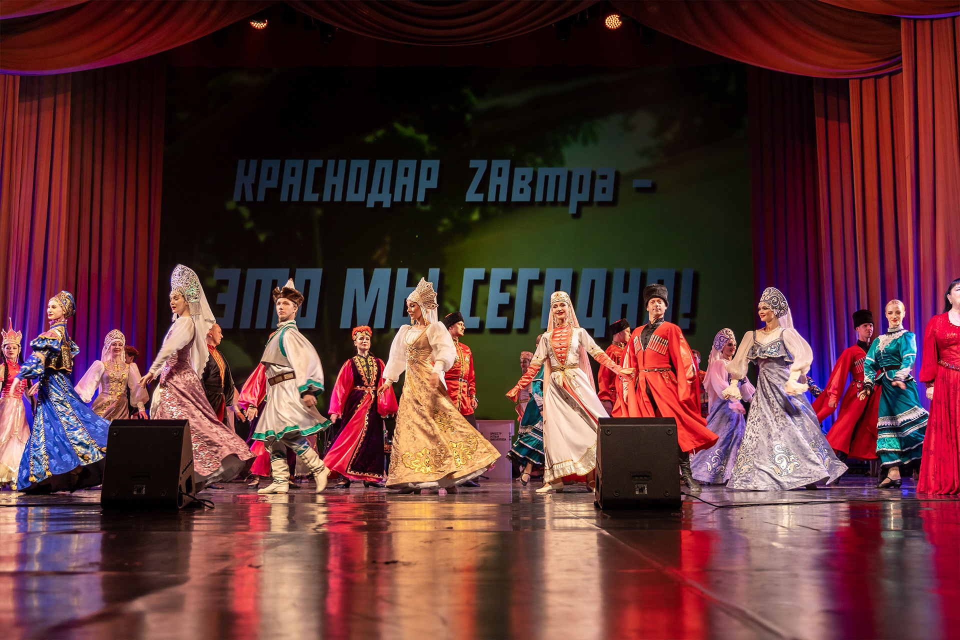 Два концерта в честь Дня города – два полных, до балконов, зала, две тысячи благодарных, любимых зрителей. Праздничный тон задавали ослепительно красивые ведущие – артист Молодёжного театра Илья Сердюков и режиссёр Жанна Пономарёва. Лучшие люди города посетили памятные концерты в честь Дня города: ударники труда и победители профессиональных конкурсов, представители трудовых династий, волонтёры, члены общественных организаций, участники СВО и члены их семей. Как много хороших, добрых слов сказали в адрес горожан почётные гости – мэр города Краснодара Евгений Наумов, председатель городской Думы Вера Галушко, глава администрации Карасунского внутригородского округа Краснодара Николай Хропов! Грамотам, благодарственным письмам не было конца! Отдельные слова благодарности были сказаны представителям ТОСов – людям, кто плетёт маскировочные сети, первыми выходят на субботники, всегда приходят на помощь и являются примером для окружающих.