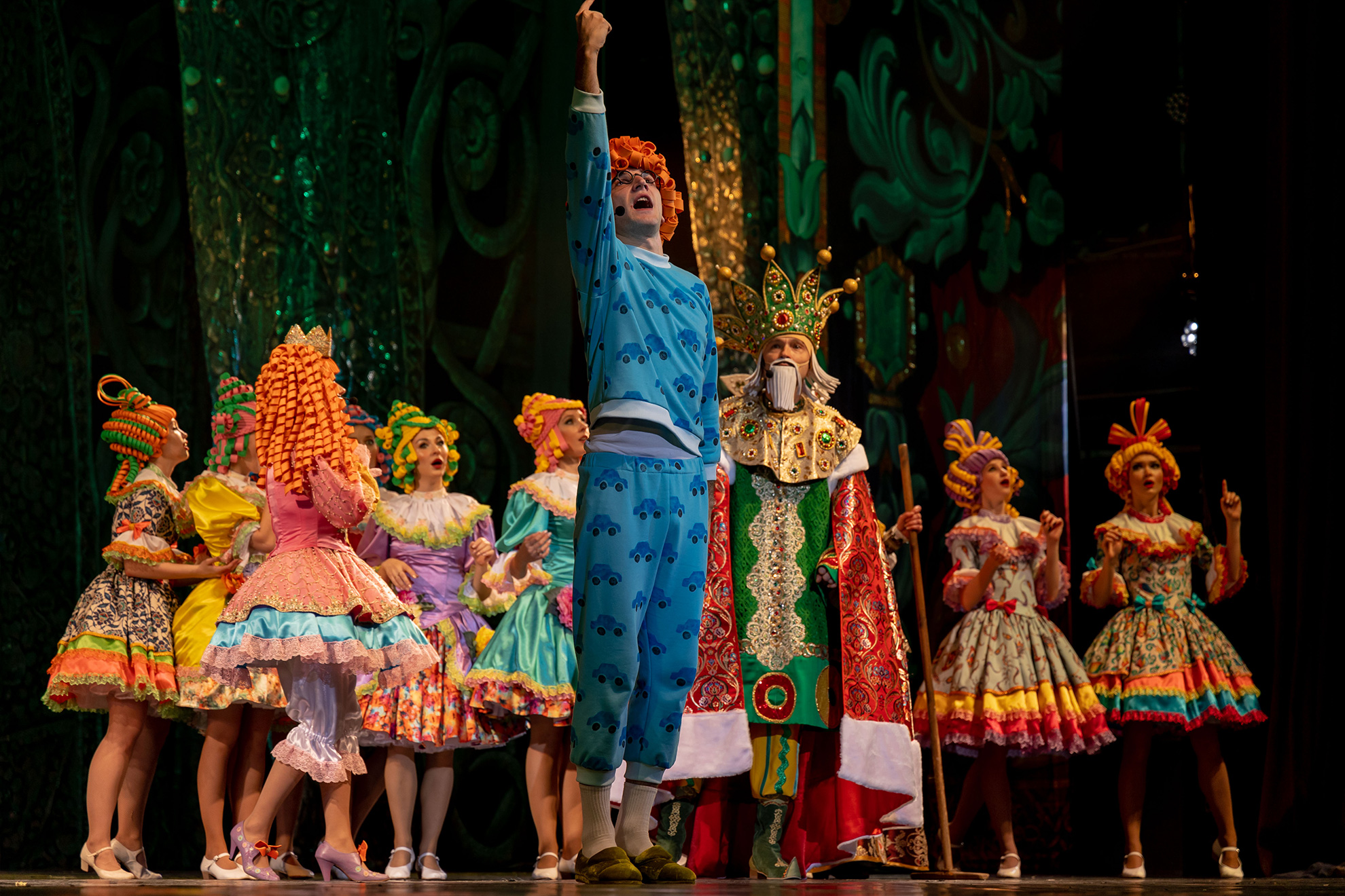 В этом году Новогодняя фантазия – действительно семейная: в волшебном лесу, как с полотен Васнецова, в Новогоднюю ночь искать самую сказочную сказку отправились братец Иванушка (Фёдор Маслёха) и сестрица Алёнушка (заслуженная артистка Краснодарского края Евгения Великодная). Хитрюги Декабрь и Январь (Роман Саенко и Илья Сердюков) вытащили детей прямо из постели и спровадили за сказкой в Тридесятое царство. Позже туда, на подмогу детям, попали их мама и папа (Олеся Никифорова и Карен Айрапетян), а потом ещё и бабушка, которая «немножко волшебница» (Инга Аничкина) и дедушка (Евгений Парафилов). В финале вся семья оказалась в полном составе, подтверждая нехитрую, но такую важную мысль: самая главная ценность в нашей жизни – семья. И если все «семь я» вместе, то никакие козни – ни происки Соловья Разбойника (Александр Теханович), ни интриги Царя Гороха (заслуженный артист Краснодарского края Александр Техтелев) – ей не страшны.