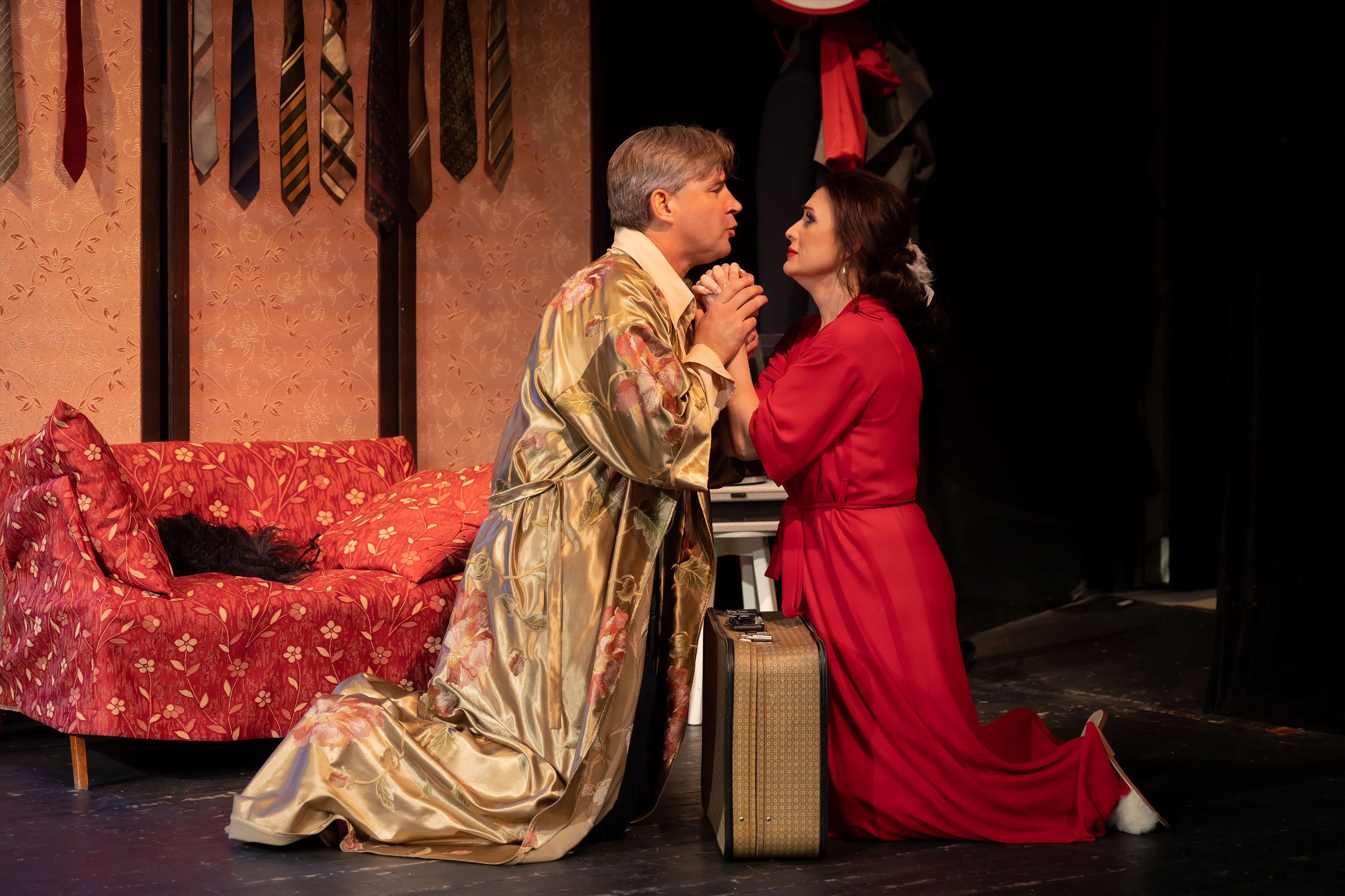 Её противоположность разлучница Раиса Захаровна – актриса Оксана Трегубова – убедительна в своём желании построить семью в духе французских мелодрам. О её победах/поражениях на любовном фронте говорят висящие на спинке дивана галстуки.