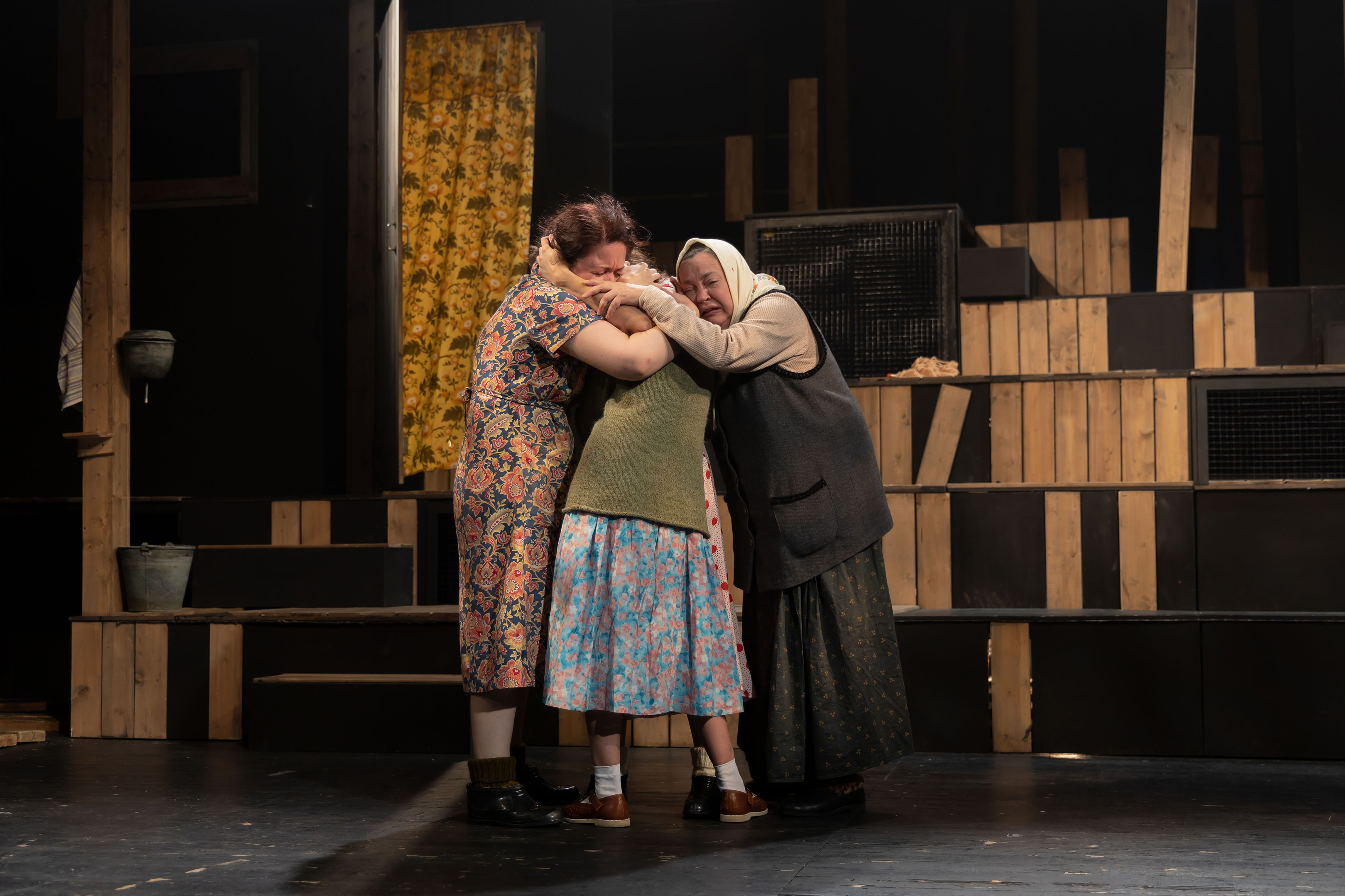 В спектакле «Любовь и голуби» один состав артистов. Трудно представить себе, что Надю Кузякину, супругу незадачливого голубятника, будет играть кто-либо, кроме заслуженной артистки Краснодарского края Юлии Макаровой. Роль, о которой можно мечтать. Наденьке, сильной женщине, хранительнице очага, на сцене пришлось несладко: женская часть зала рыдала, когда она наматывала круги, выпуская на волю гнев.