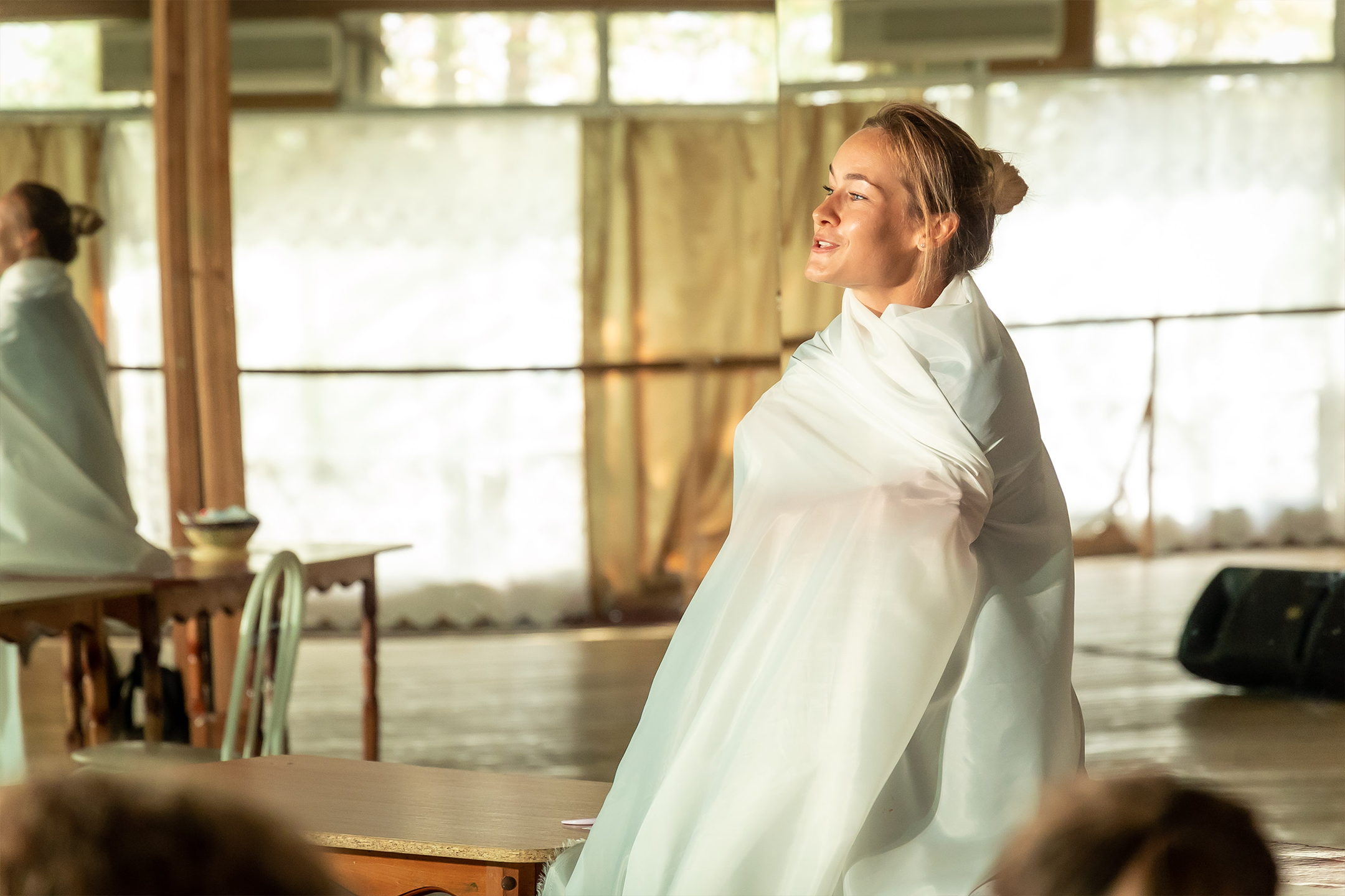 – Это удивительная штука: когда актёры обмениваются опытом, они становятся абсолютно живыми, свободными, имеют возможность попробовать себя в новых рамках, новом материале, предлагаемых обстоятельствах. Поэтому оценить, как и переоценить опыт, который мы здесь приобрели, – невозможно, – подводит итог насыщенным творческим дням негласный художественный руководитель школы режиссёр, педагог, большой друг Молодёжного театра Михаил Чумаченко. – Любой живой театр должен так начинать сезон!
