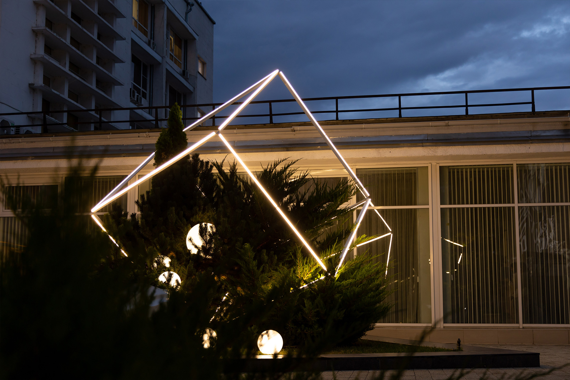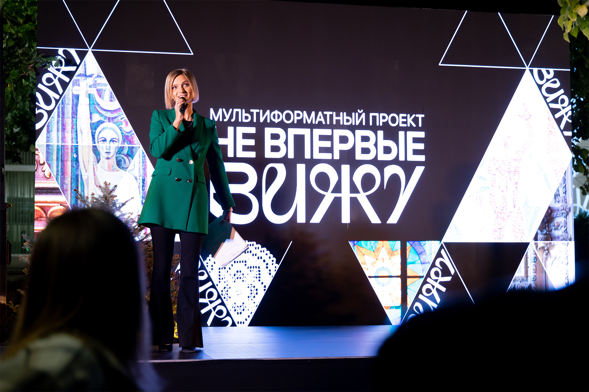 На открытии было атмосферно. Приятная музыка. Цифровые экраны. Разбросанные тут и там пуфики для зрителей. Таманский брют… Лёгкие сумерки, словно наброшенное «на плечи» дворика газовое покрывало, придавали вечеру таинственность и некую зыбкость.