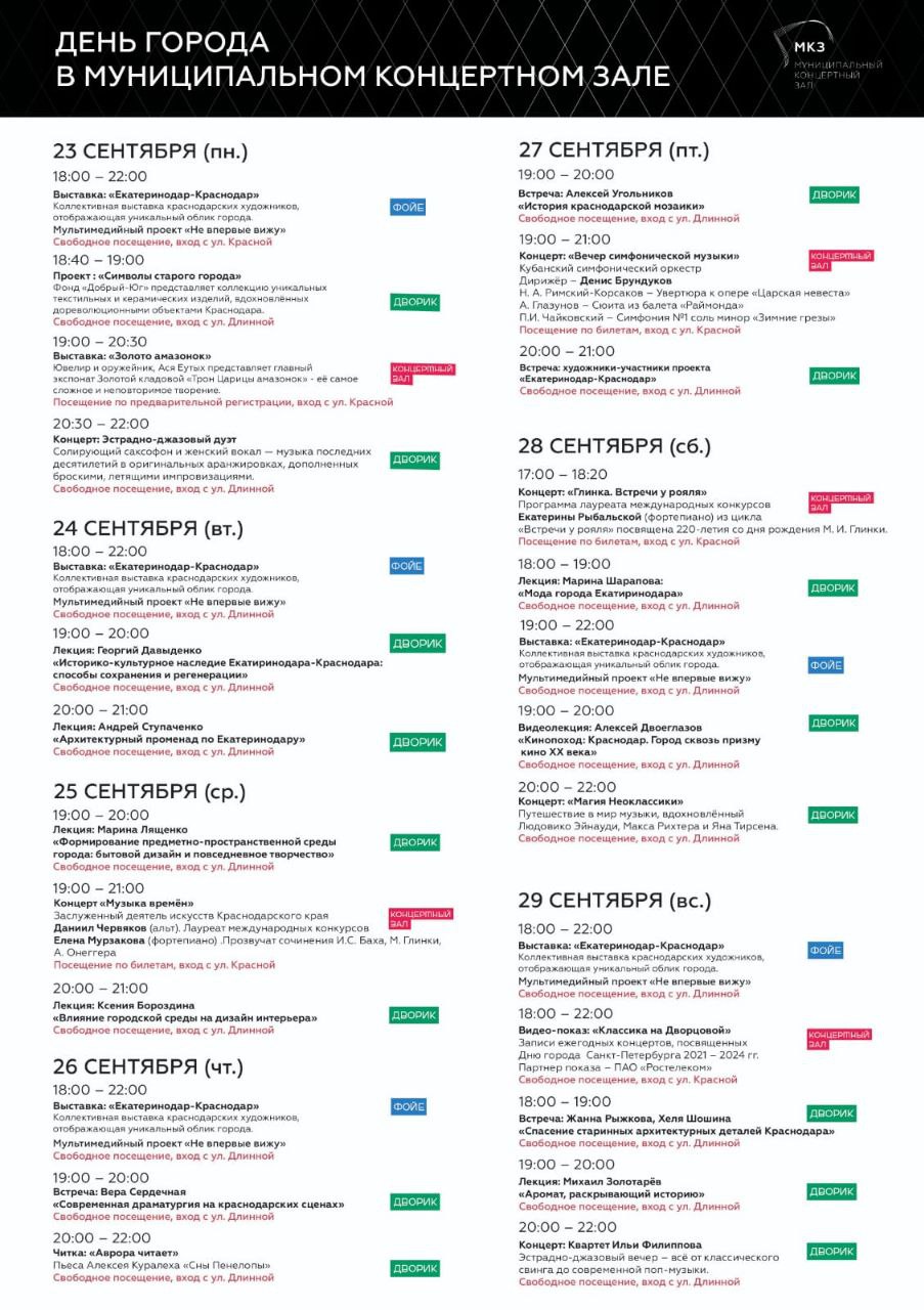 Неделя открытий ждёт краснодарцев и гостей города. В органном зале стартовал культурно-просветительский проект «Выход в город», посвящённый 231-летию Екатеринодара-Краснодара