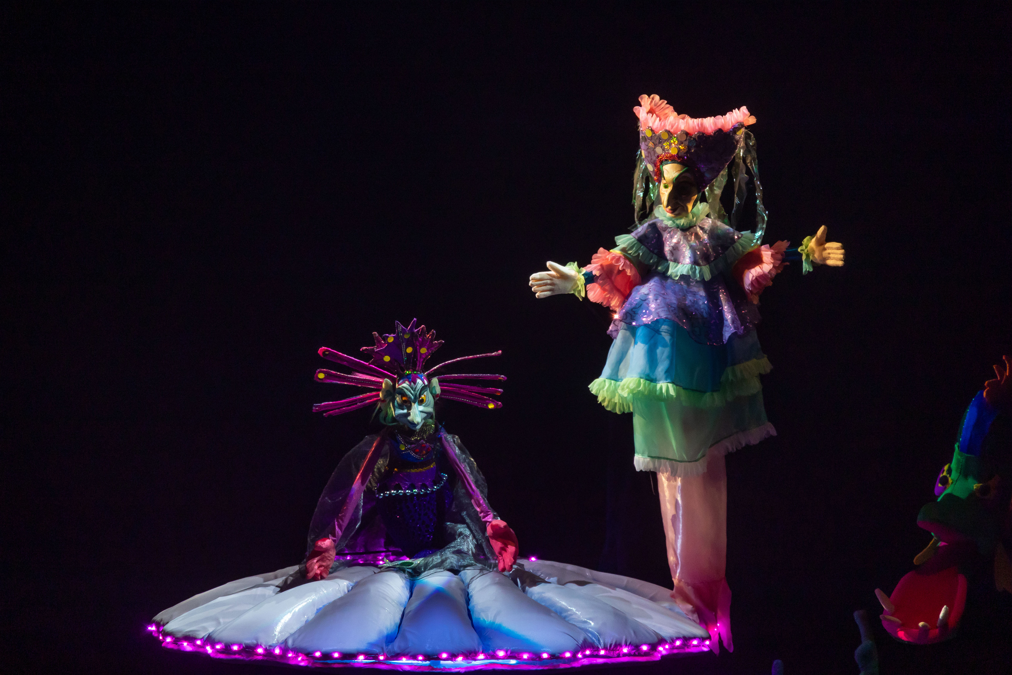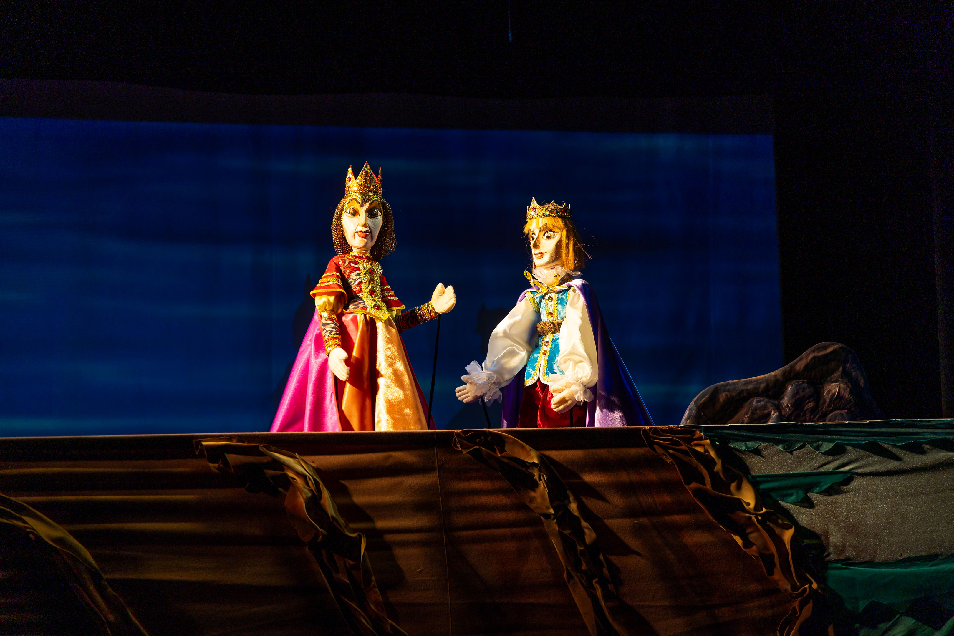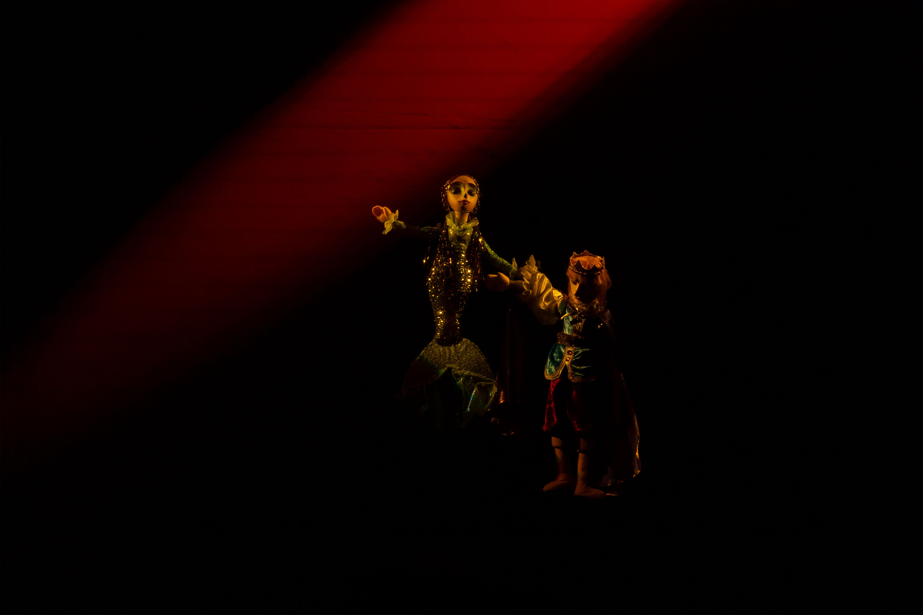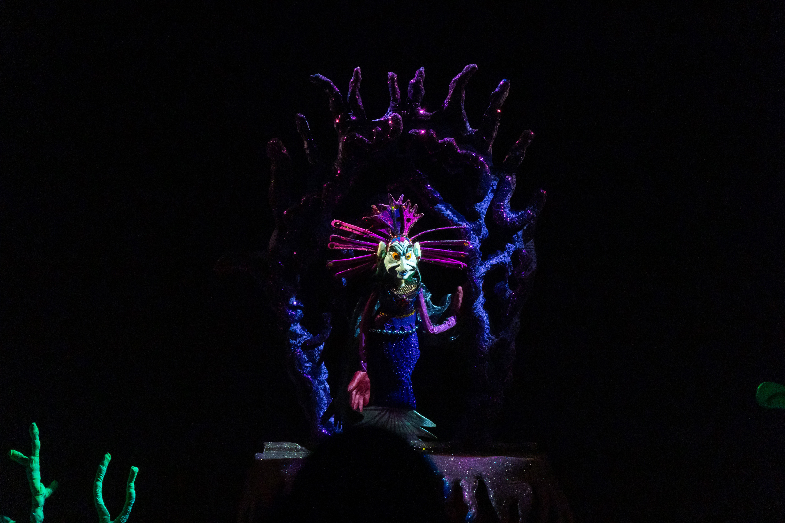 Перед нами предстали куклы: выразительные колдунья и владычица морская, придворные, разнообразные обитатели морских глубин и люди. Мы не видим артистов, но их голоса, их похожее на магию искусство делают кукол живыми…