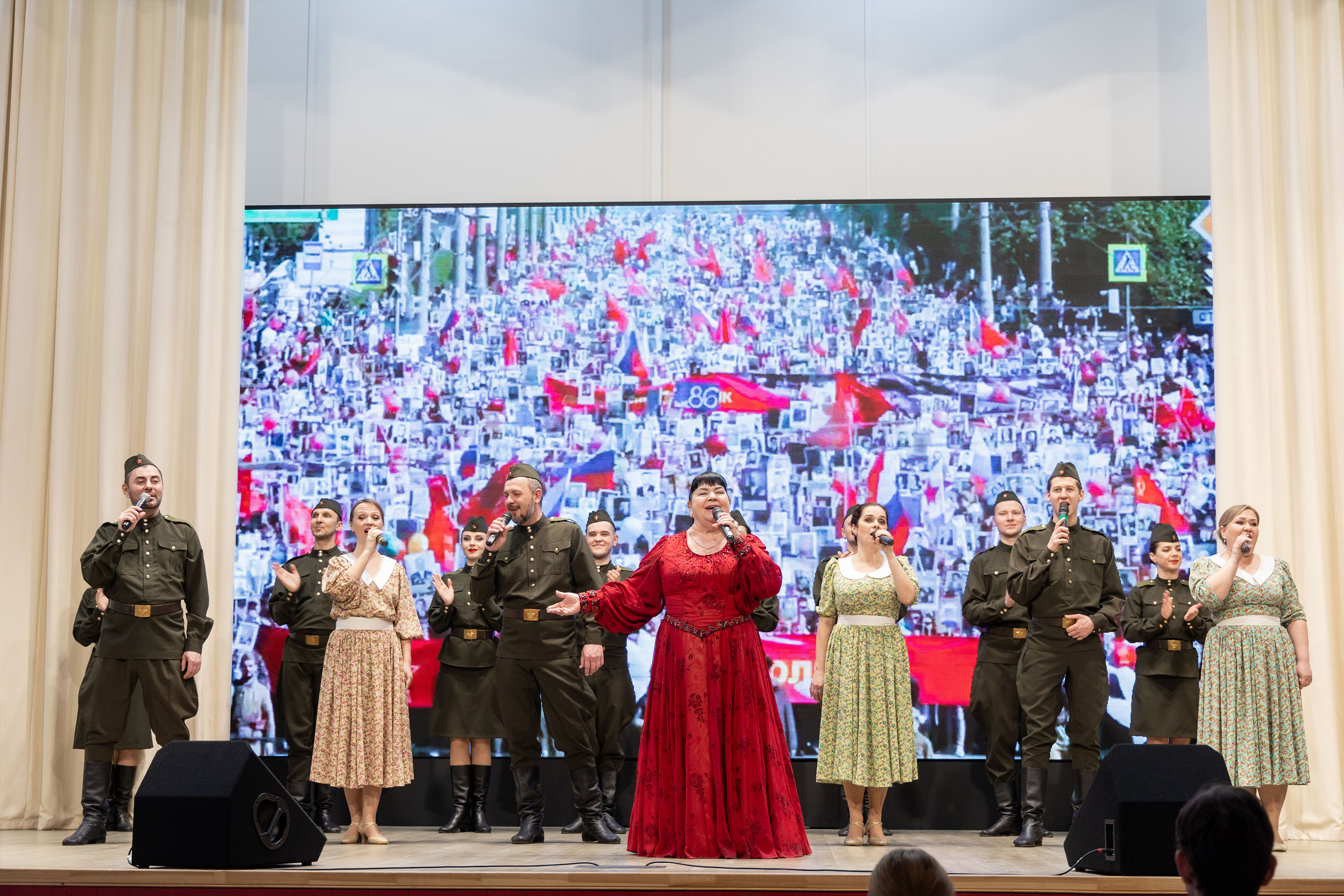 Автор проекта, режиссёр и ведущий заслуженный артист Краснодарского края Виктор Плужников построил композицию на художественных произведениях, посвящённых Великой Отечественной войне, и документальных материалах. В программе в исполнении солистов и хореографического ансамбля прозвучала военная классика: песни «Баллада о солдате», «На солнечной поляночке», «Казаки в Берлине» и «Тёмная ночь»; современные патриотические песни.