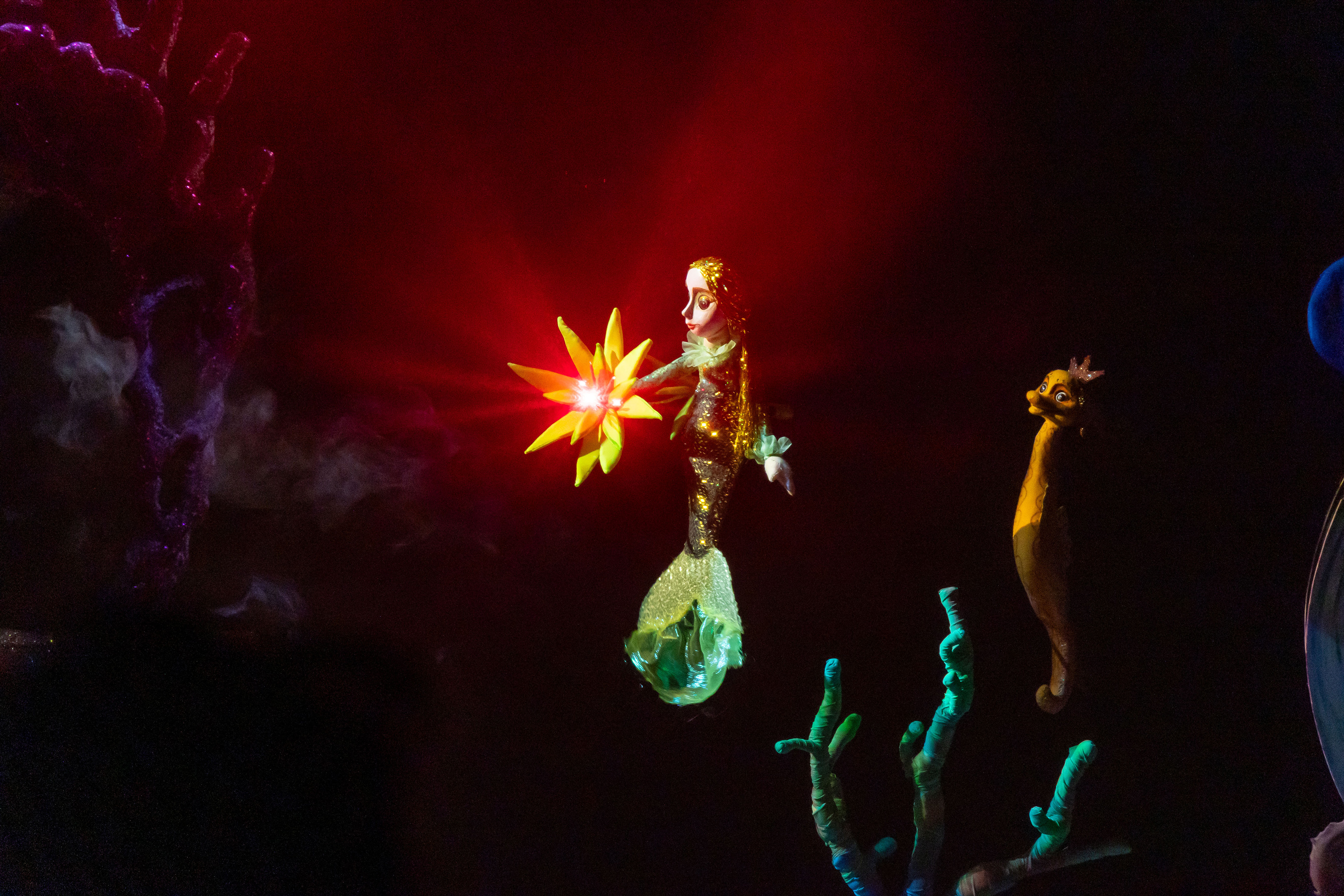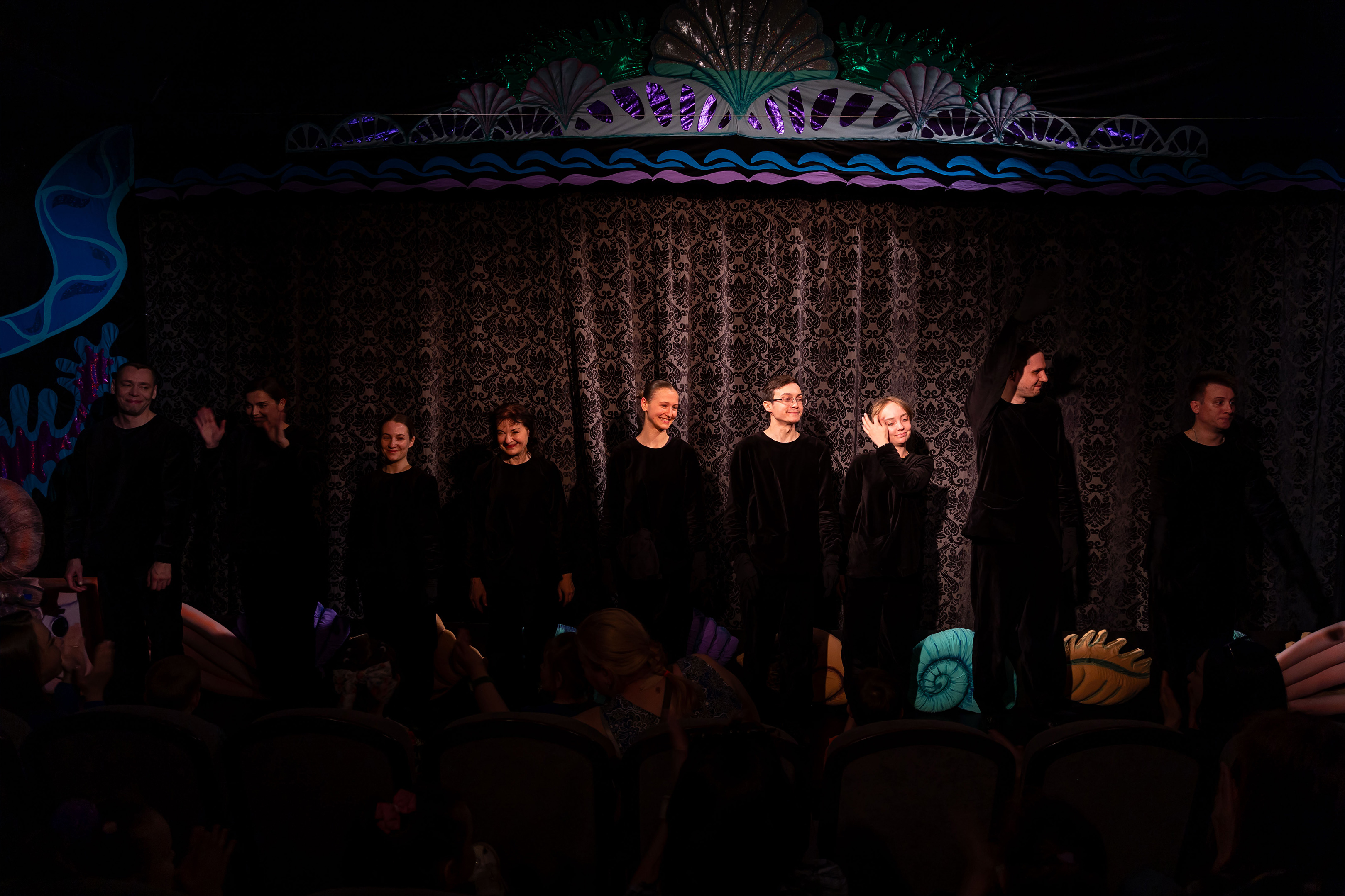 В двух действиях сказки, которая… так похожа на сказку, маленькие и большие зрители с головой окунулись во мрак морского царства и вдохнули прибрежного солёного воздуха. Внизу, под водой, – подводные камни интриг, тьма и холод. Наверху – свет, радость, песни.