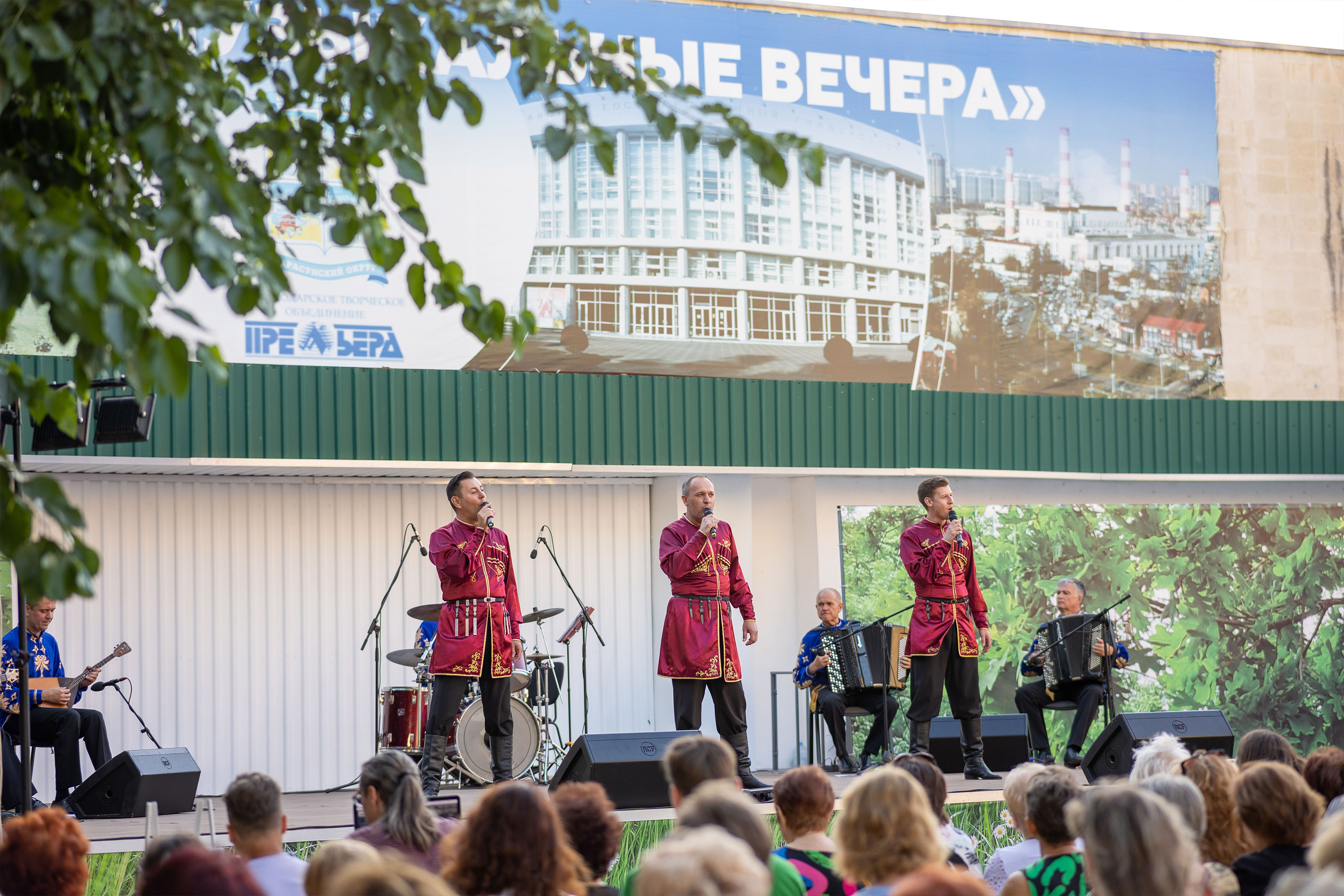 Прозвучали патриотические песни и заводные плясовые, старинные казачьи и шуточные. Выступления солистов перемежалось виртуозными инструментальными номерами ансамбля в составе: музыкальный руководитель коллектива заслуженный работник культуры Кубани Владимир Рудой – баян, лауреат всероссийских конкурсов Александр Малышко – баян, лауреат всероссийских конкурсов Андрей Кибенко – балалайка, Павел Федоренко – бас-гитара. Партия ударных – заслуженный артист Краснодарского края Юрий Чернявский.