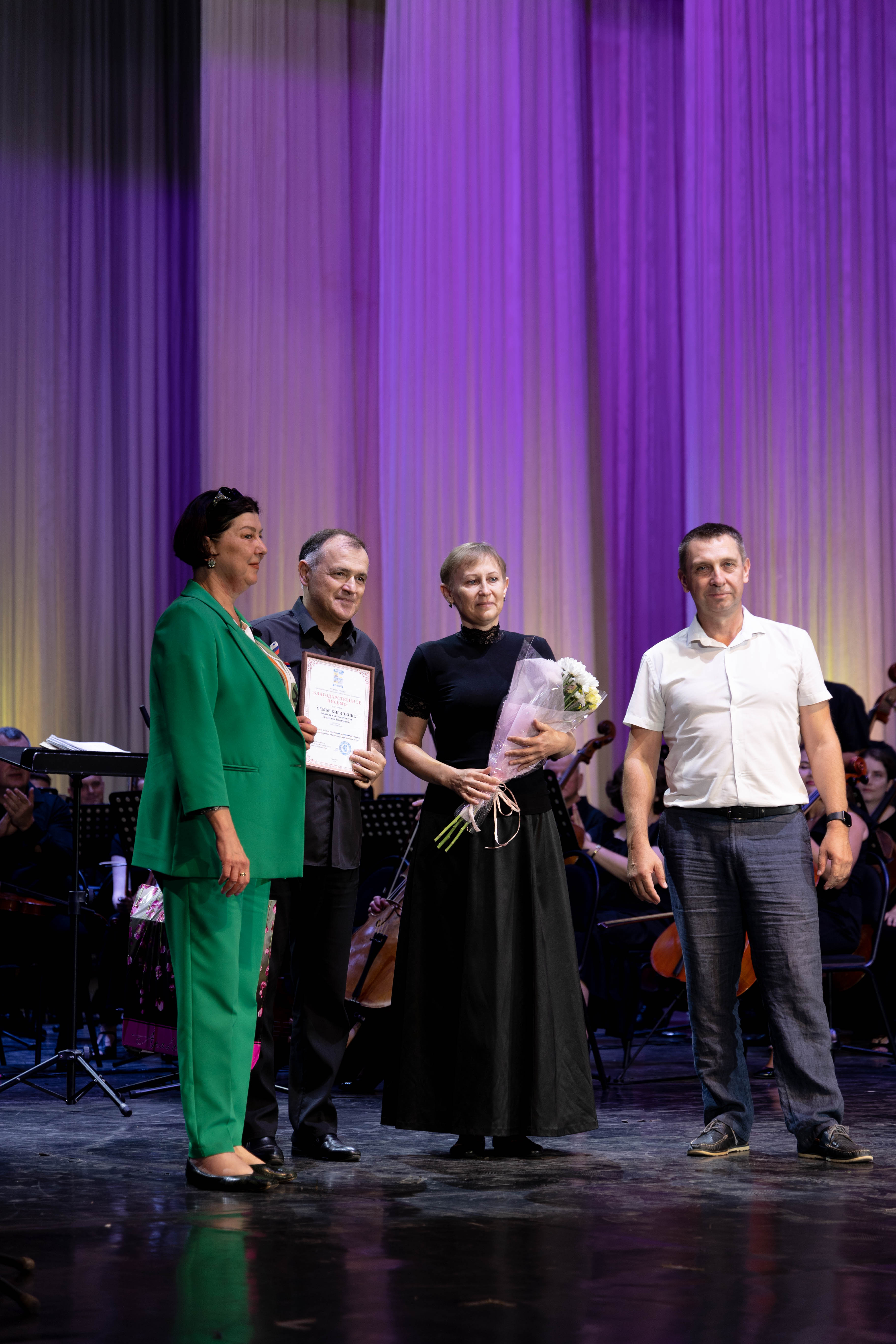 Перед началом концерта представители администрации округа в честь Года семьи сердечно поздравили творческие семьи «Премьеры». Благодарности председателя городской Думы Краснодара за вклад в развитие фестиваля «Карасунские музыкальные вечера» удостоены: Илья и Екатерина Филипповы, Олег и Виктория Шулекины, Вячеслав и Наталья Татарниковы. Благодарственные письма главы администрации Карасунского внутригородского округа Краснодара получили: Герман и Лилия Багдыковы, Иван и Татьяна Ежовы, Дмитрий и Виктория Кокауровы, Станислав и Елена Пунтус, Сергей и Надежда Пылаевы, Вадим и Ольга Рамакаевы, Роман и Анна Саенко, Владимир и Екатерина Трилюдины, Виктор и Инна Оковитые, Анатолий и Екатерина Кириценко, Даниил Червяков и Анастасия Головачёва, Андрей и Татьяна Храмовы.