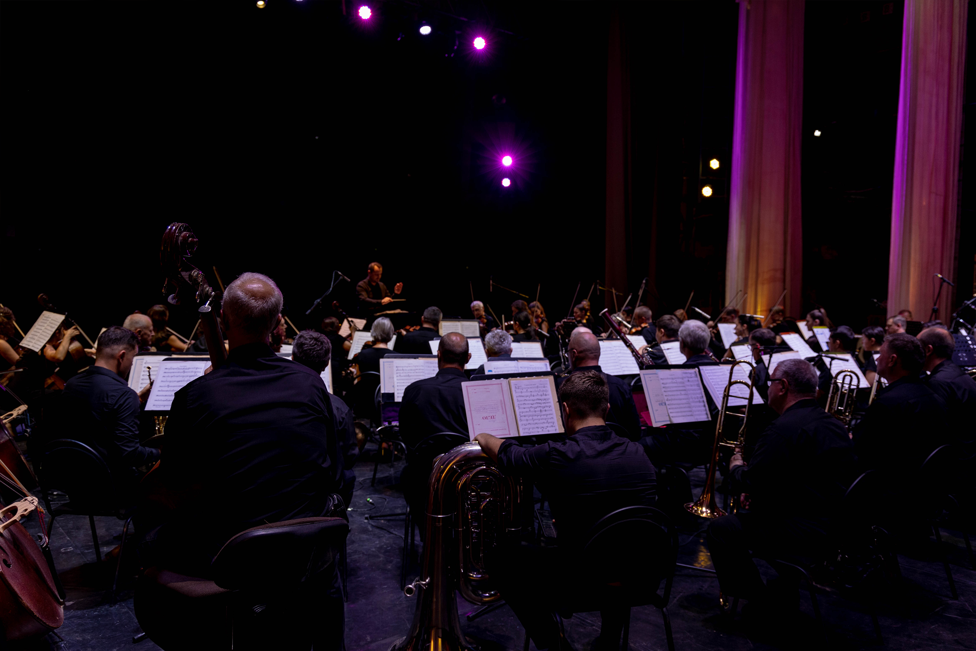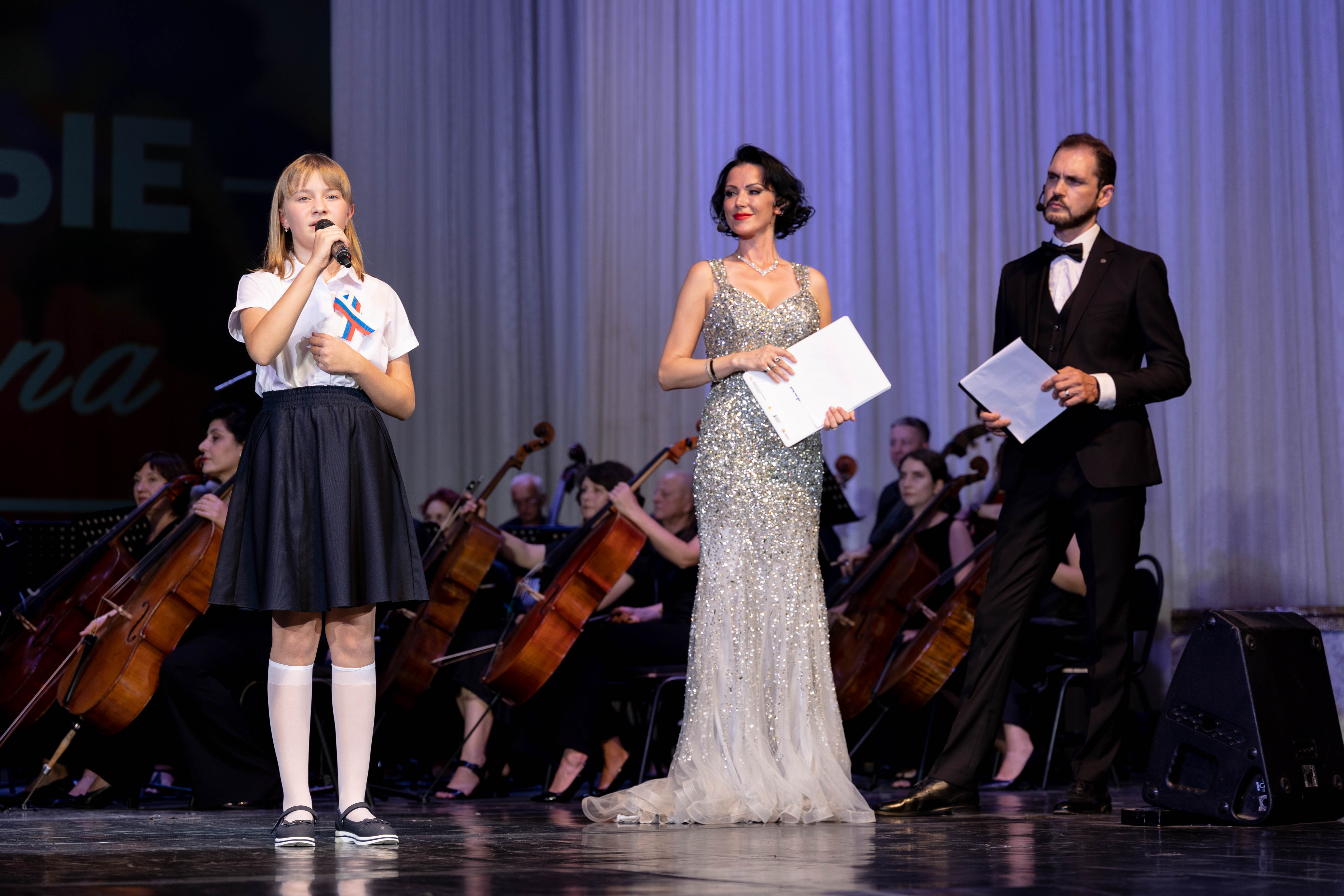 А затем ослепительно красивые ведущие режиссёр КМТО «Премьера» Жанна Пономарёва и артист Молодёжного театра Илья Сердюков провозгласили начало концерта! Место за пультом Кубанского симфонического оркестра занял главный дирижер оркестра заслуженный деятель искусств Краснодарского края Денис Ивенский. И слово взяла музыка.