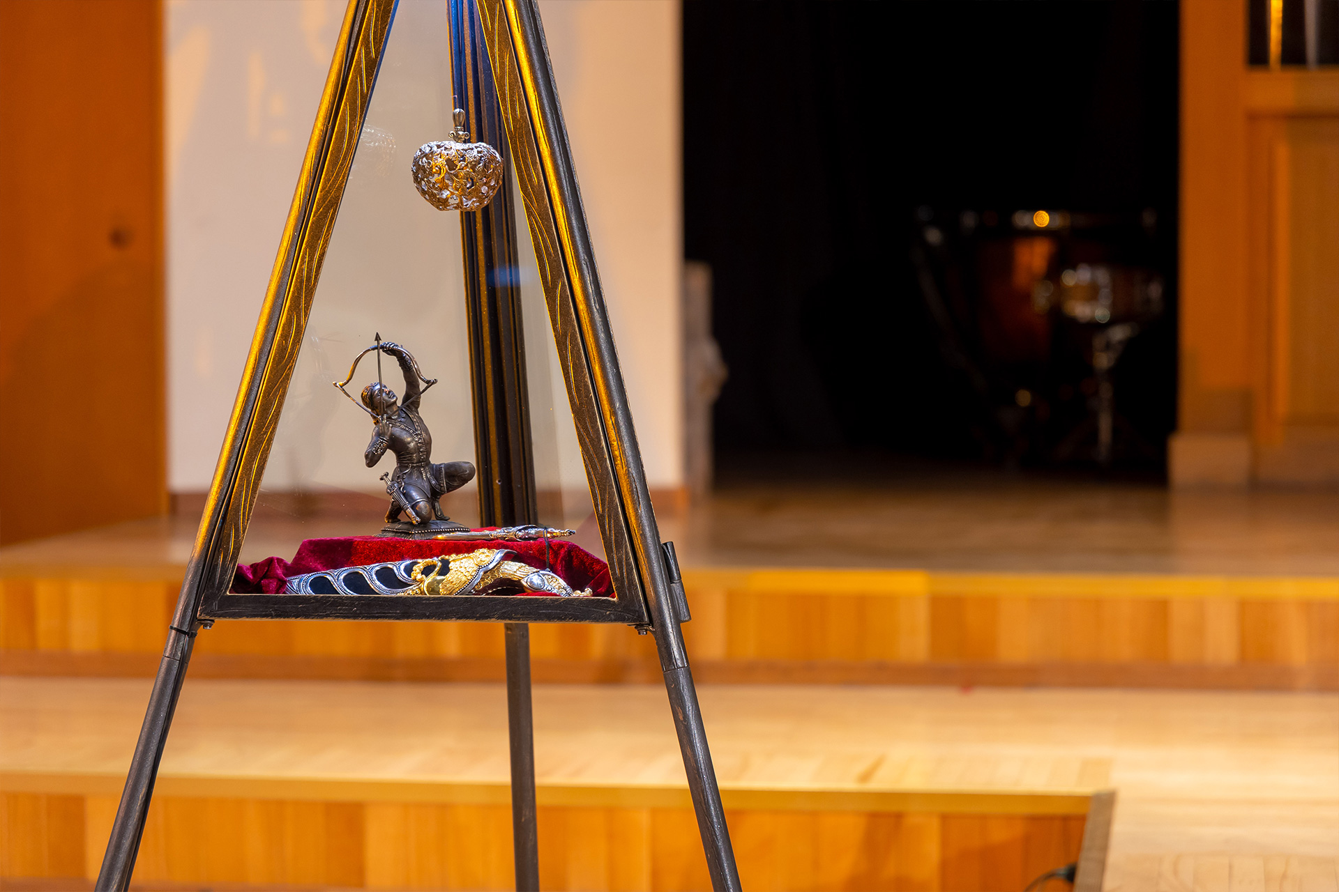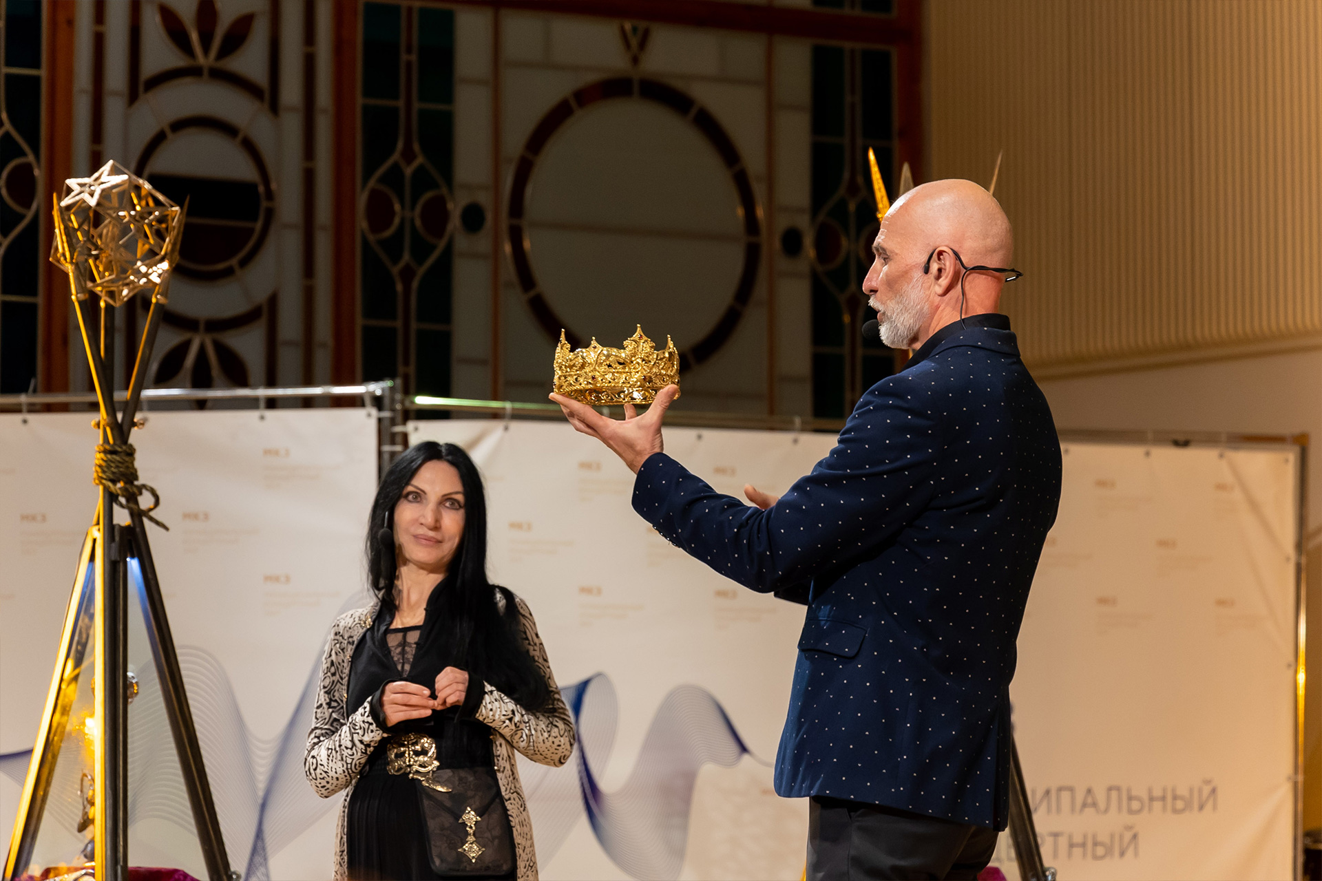 Это действительно стоило увидеть! Жемчужина Золотой кладовой – величественный Трон Царицы Амазонок из золота и бронзы, над которым художник, потомственный ювелир и оружейник, работала год. Короны, орнамент которых сплетён из античных и адыгских мифов. Фантастической красоты оружие и предметы амуниции… А как красиво всё это смотрелось на сцене органного зала! В таинственном мерцании труб органа Рудольф фон Беккерат! Кажется, король инструментов, построенный по последнему слову музыкальной науки, беззвучно выводит мелодию, вступая в диалог с тысячелетней мифологией земли адыгов!