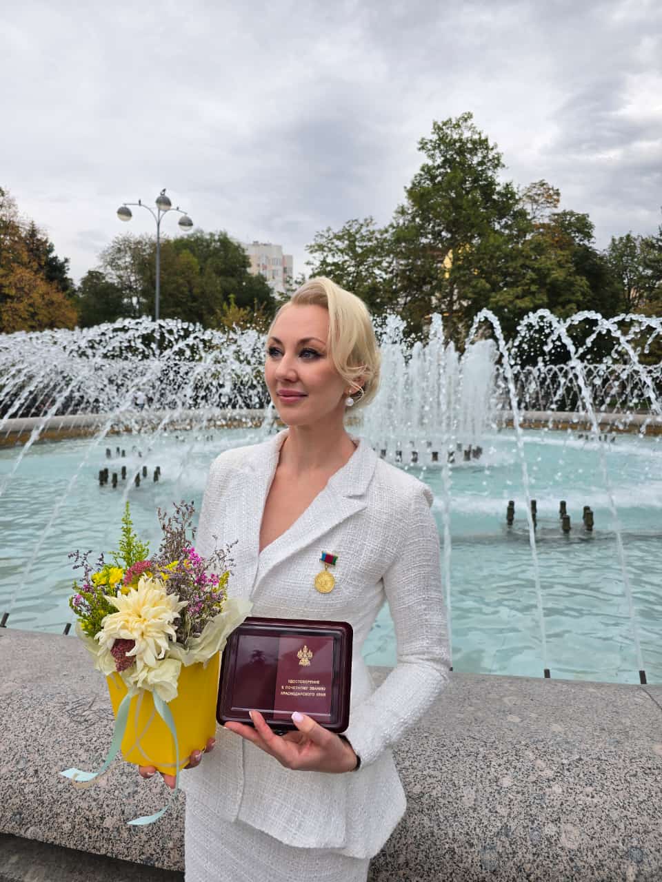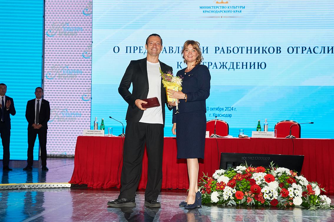 Удостоверение и нагрудный знак артистам «Премьеры» вручала министр культуры Краснодарского края заслуженный работник культуры Краснодарского края Виктория Лапина.