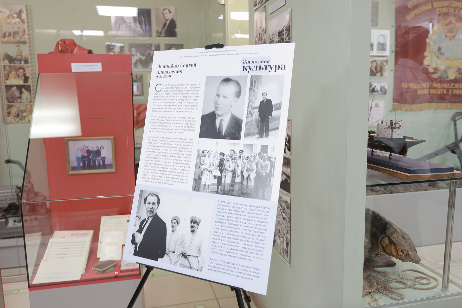 Когда человек уходит, остаётся память. Дети Сергея Алексеевича, его коллеги позаботились о том, чтобы личные вещи С.Чернобая попали в музей им. Фелицына. Несколько стендов, посвящённых жизни и творчеству Сергея Алексеевича, прекрасно вписались в экспозицию зала «Кубань послевоенная». Экскурсию провёл заведующий отделом истории и этнографии музея Е.Д. Фелицына Юрий Бунин.