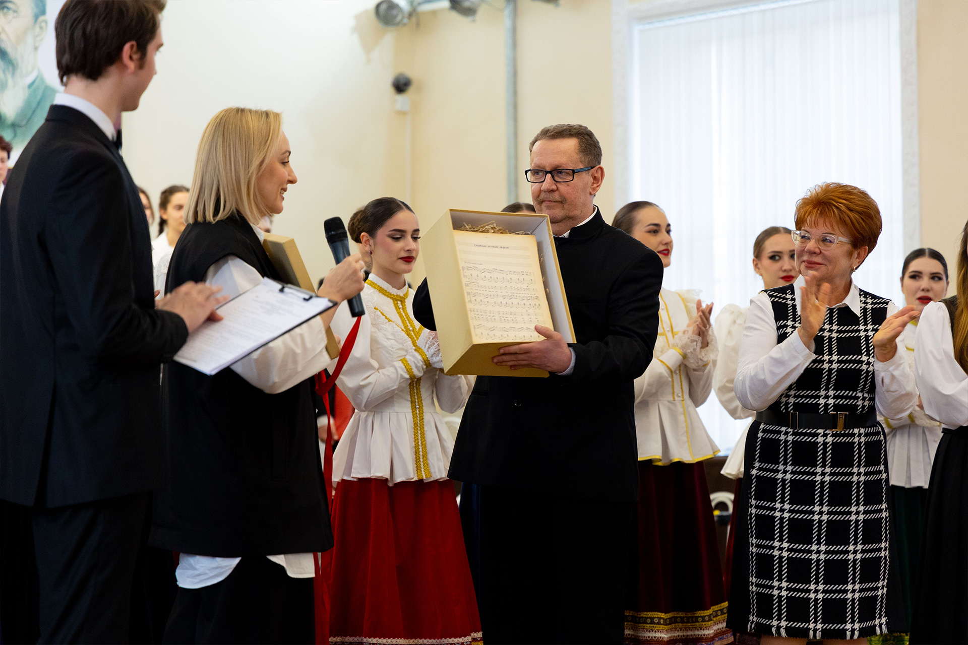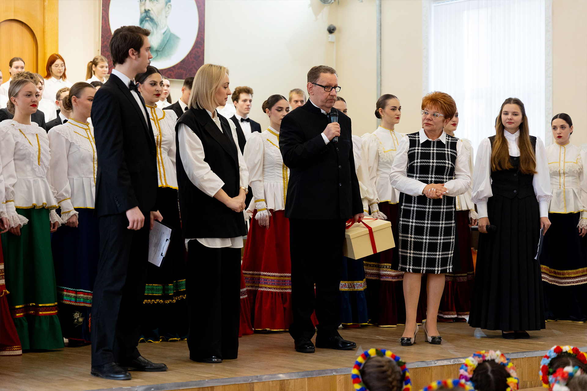 Приветствие фестивалю пришло из академии музыки им. Гнесиных от заведующей кафедрой хорового и сольного народного пения заслуженного работника высшей школы РФ профессора Марины Васильевны Медведевой. Она сказала, что академический и народный хоры – два русла одной реки, и творчество Сергея Чернобая этому подтверждение.