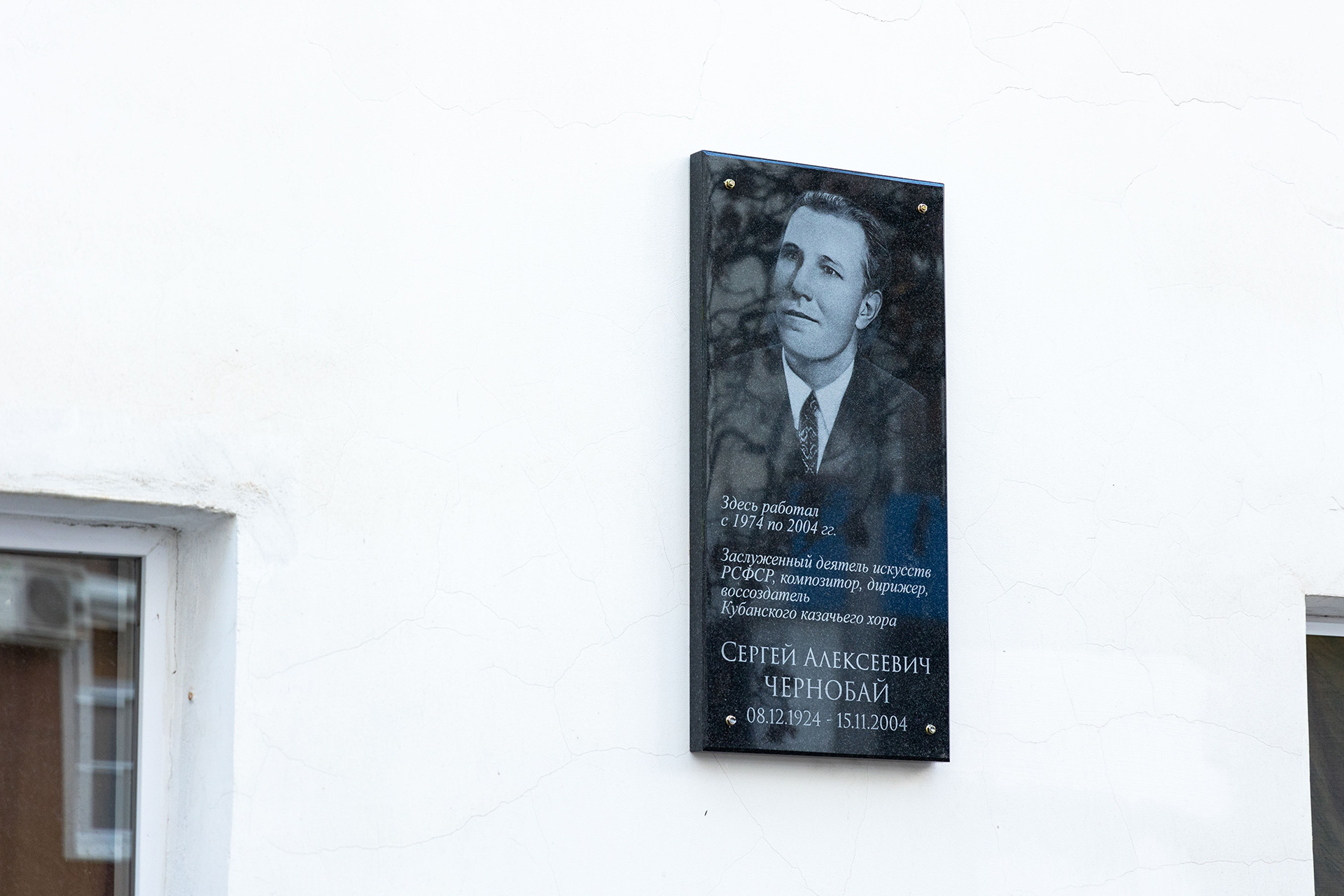 Пятый день Краснодарского фестиваля хорового искусства имени заслуженного деятеля искусств РСФСР С.А. Чернобая, инициированного КМТО «Премьера» при поддержке министерства культуры Краснодарского края, администрации МО г. Краснодар, начался с открытия мемориальной доски на старом здании Краснодарского музыкального колледжа им. Н.А. Римского-Корсакова и продолжился в концертном зале колледжа. Фестиваль посвящён 100-летию со дня рождения воссоздателя легендарного Кубанского казачьего хора, музыканта, педагога Сергея Алексеевича Чернобая, он нацелен на популяризацию хорового искусства Кубани.