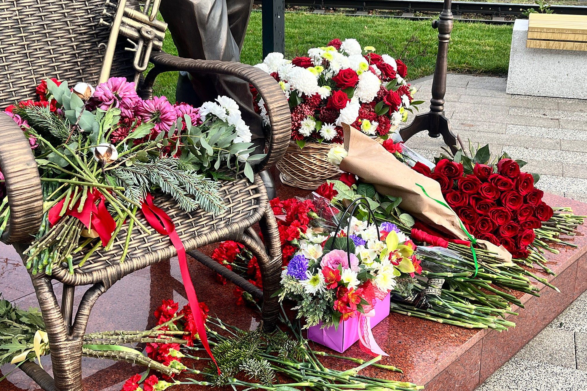 Как раз успели к его любимому детищу – Новогодней фантазии - 30. Памятник стоит перед Дворцом искусств. Словно спрашивает зрителей: «Ну как? Вам понравилось? Мы вас удивили?»