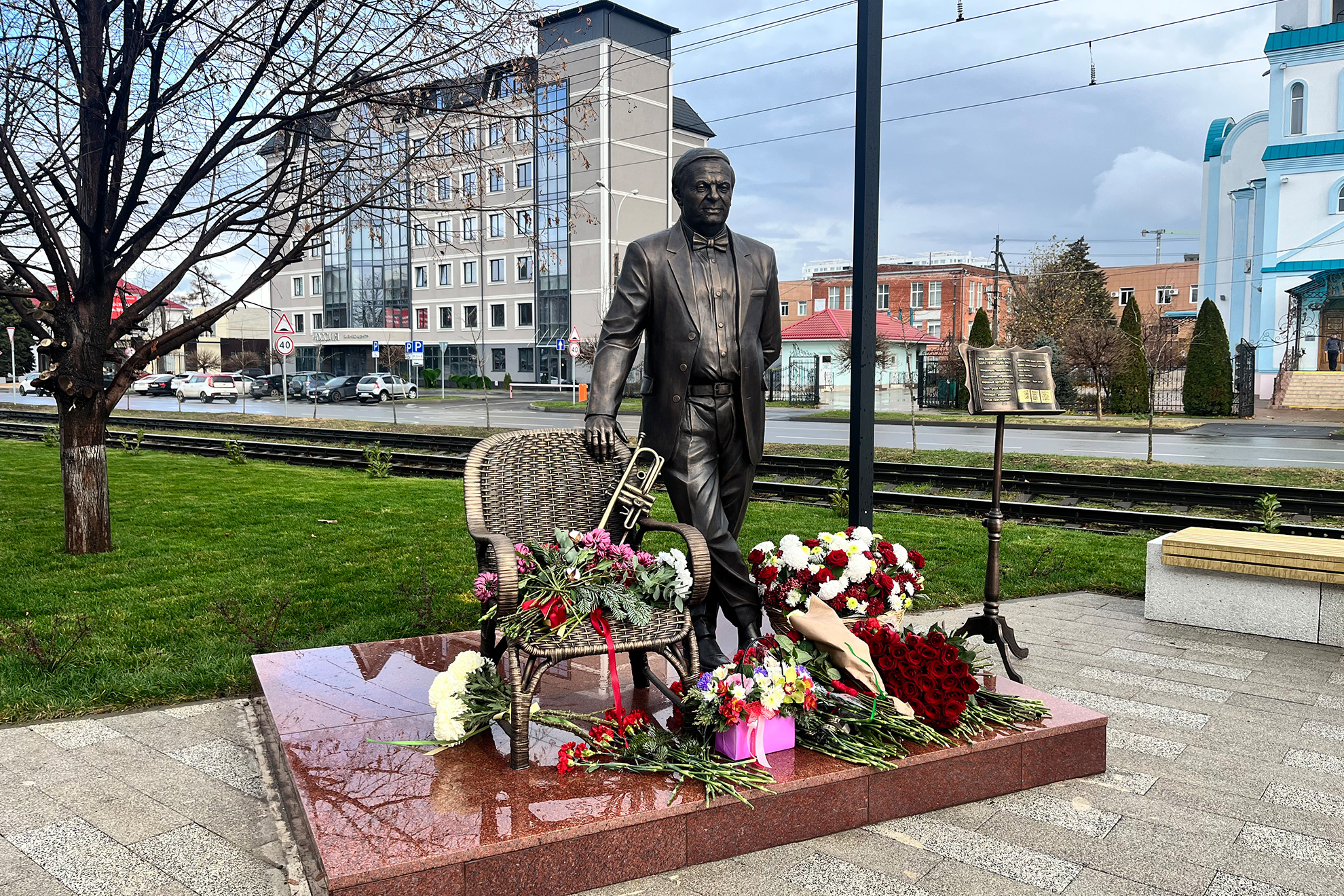 Наш дорогой Леонард Григорьевич. Народный артист России, Герой труда Кубани, лауреат премии им. Ф. Волкова. Почётный гражданин Краснодара. Только в бронзе. С умной, всепонимающей улыбкой, прячущейся в уголках губ.