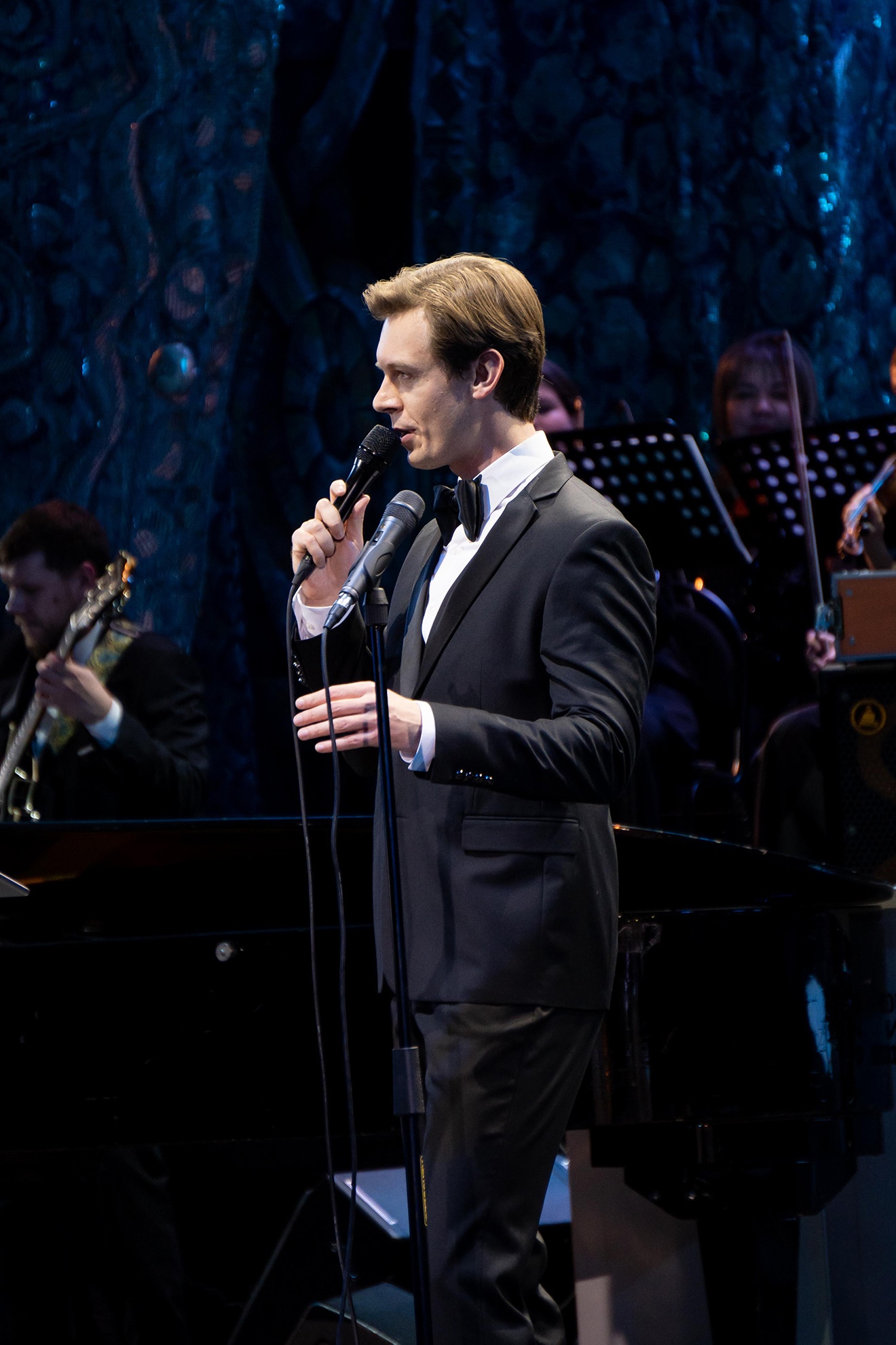 Главные рождественские хиты узнаваемым голосом Роберта Бабаева спел Фрэнк Синатра. Песнь Пресвятой Богородице Ave Maria (Радуйся, Мария, благодати полная) исполнил тот же Роберт Бабаев, ласково прозванный зрителями «наш Робертино». Брутальность оркестра во втором отделении смягчило появление струнной группы. Девушки в концертных чёрных платьях – неподражаемы!