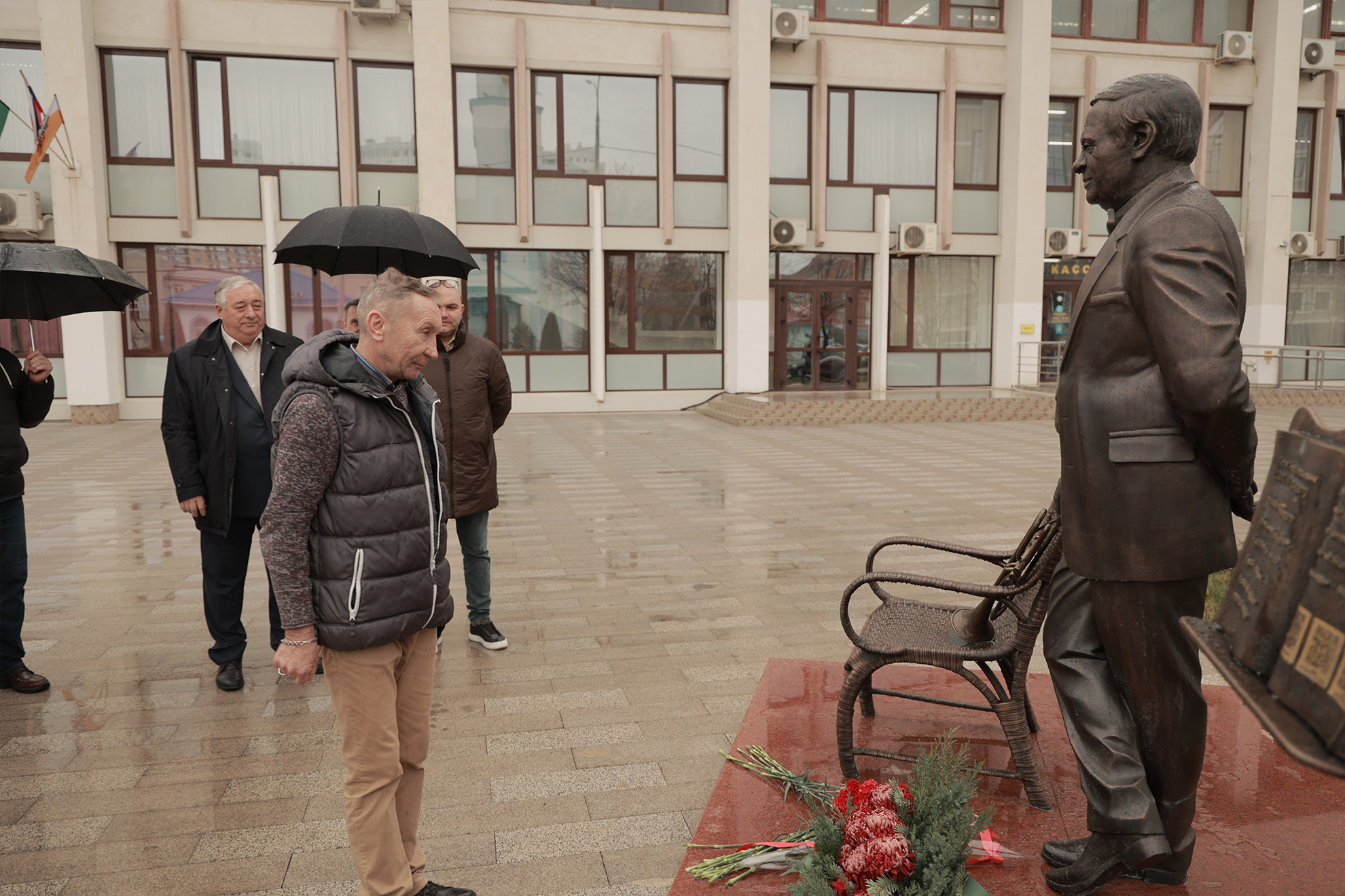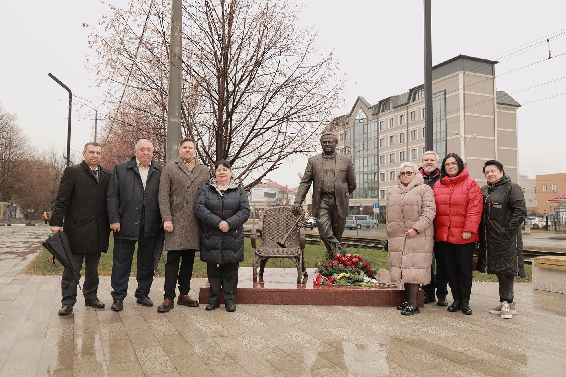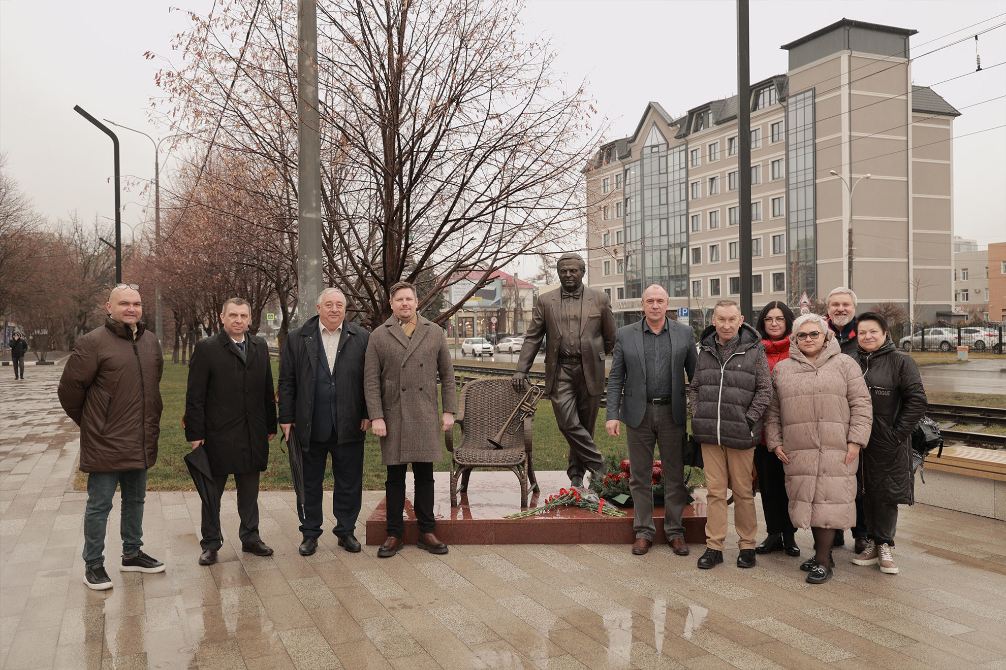 Дождь – не помеха для цветов и аплодисментов создателю «Премьеры». Поздравить бронзового именинника пришли глава администрации Карасунского внутригородского округа МО г. Краснодар Николай Хропов, артисты «Премьеры» во главе с генеральным директором Ильёй Филипповым, друзья и коллеги режиссёра и продюсера. Подходили зрители, спешащие на Новогоднюю фантазию-30, жители Карасунского округа.