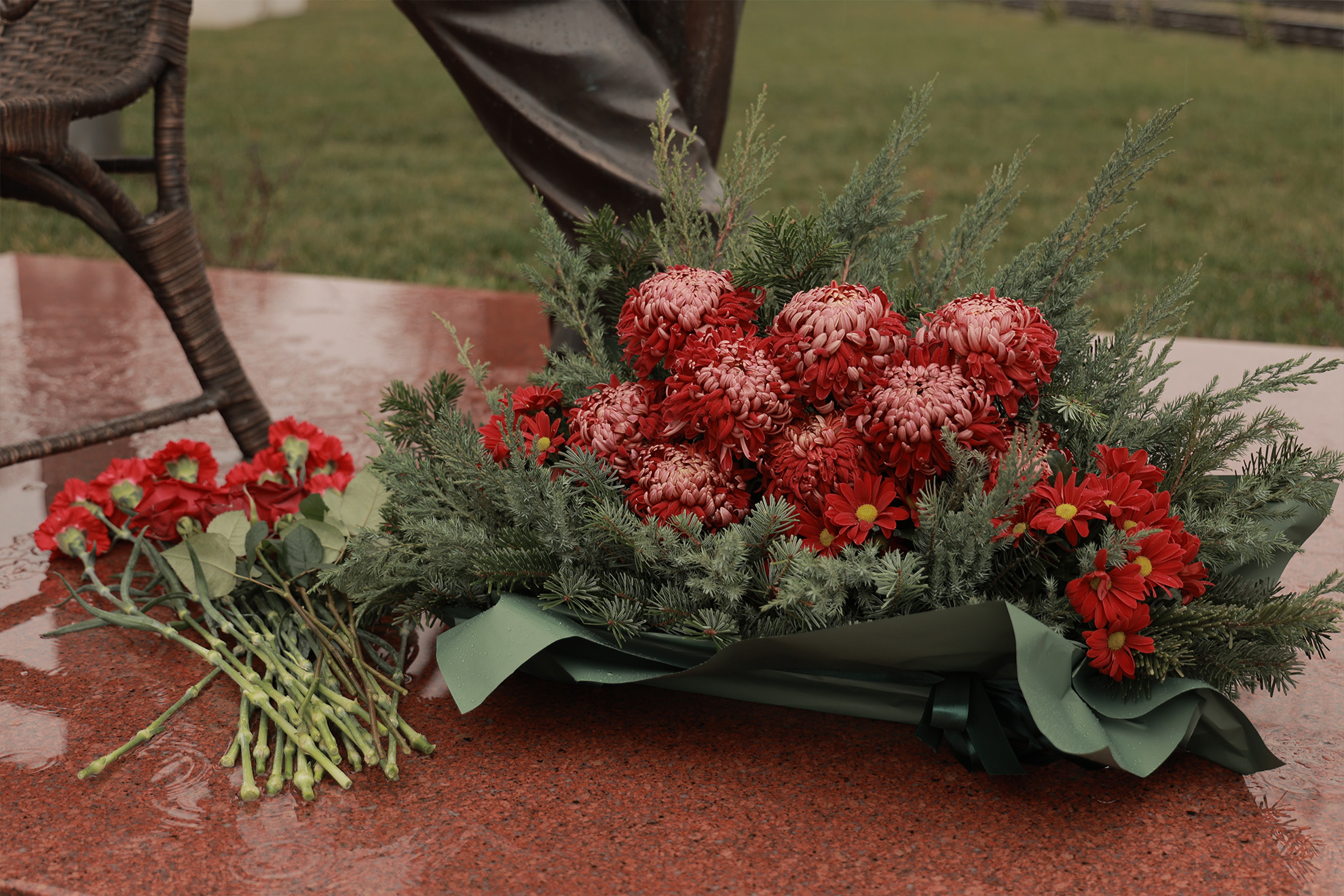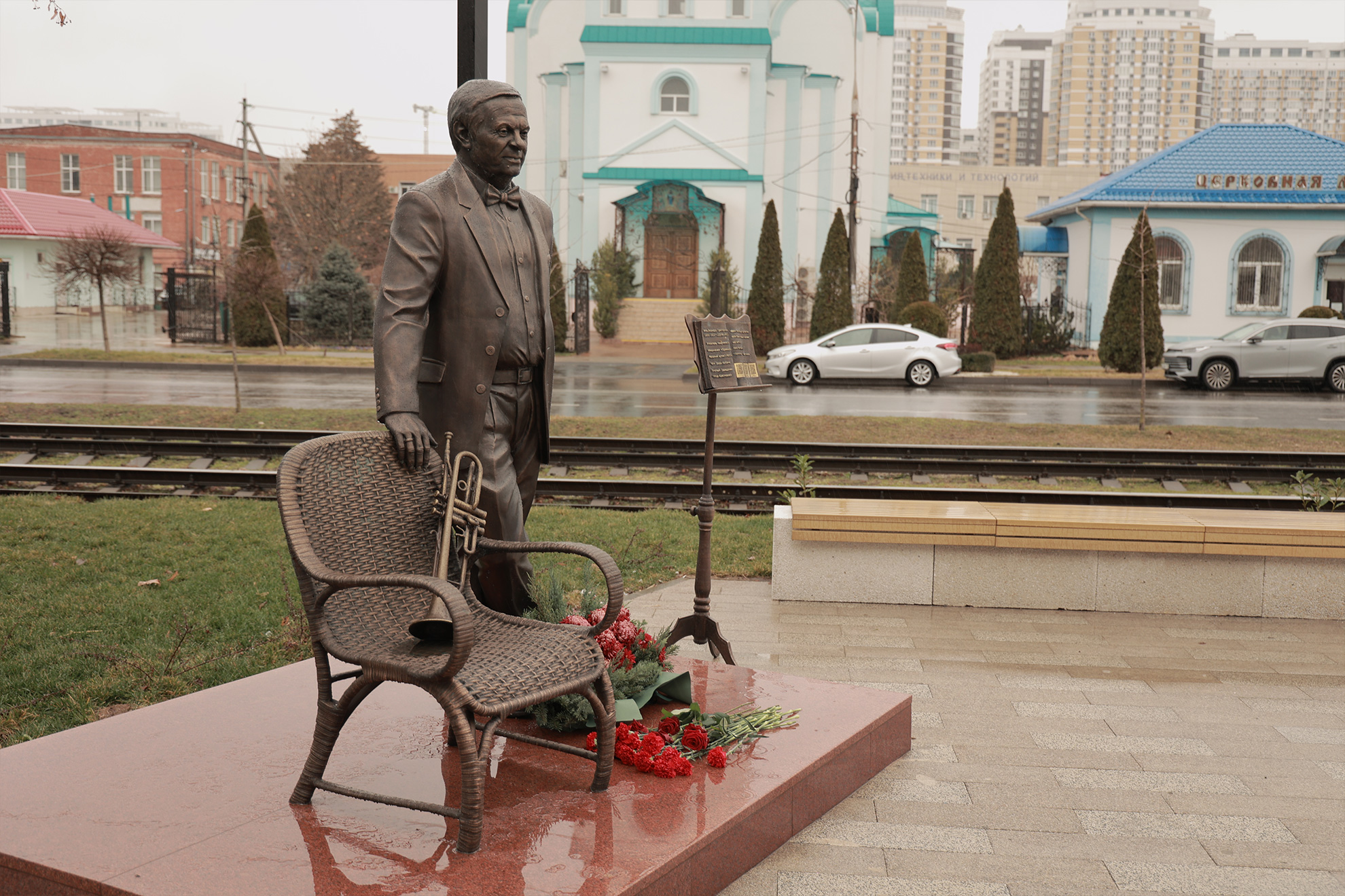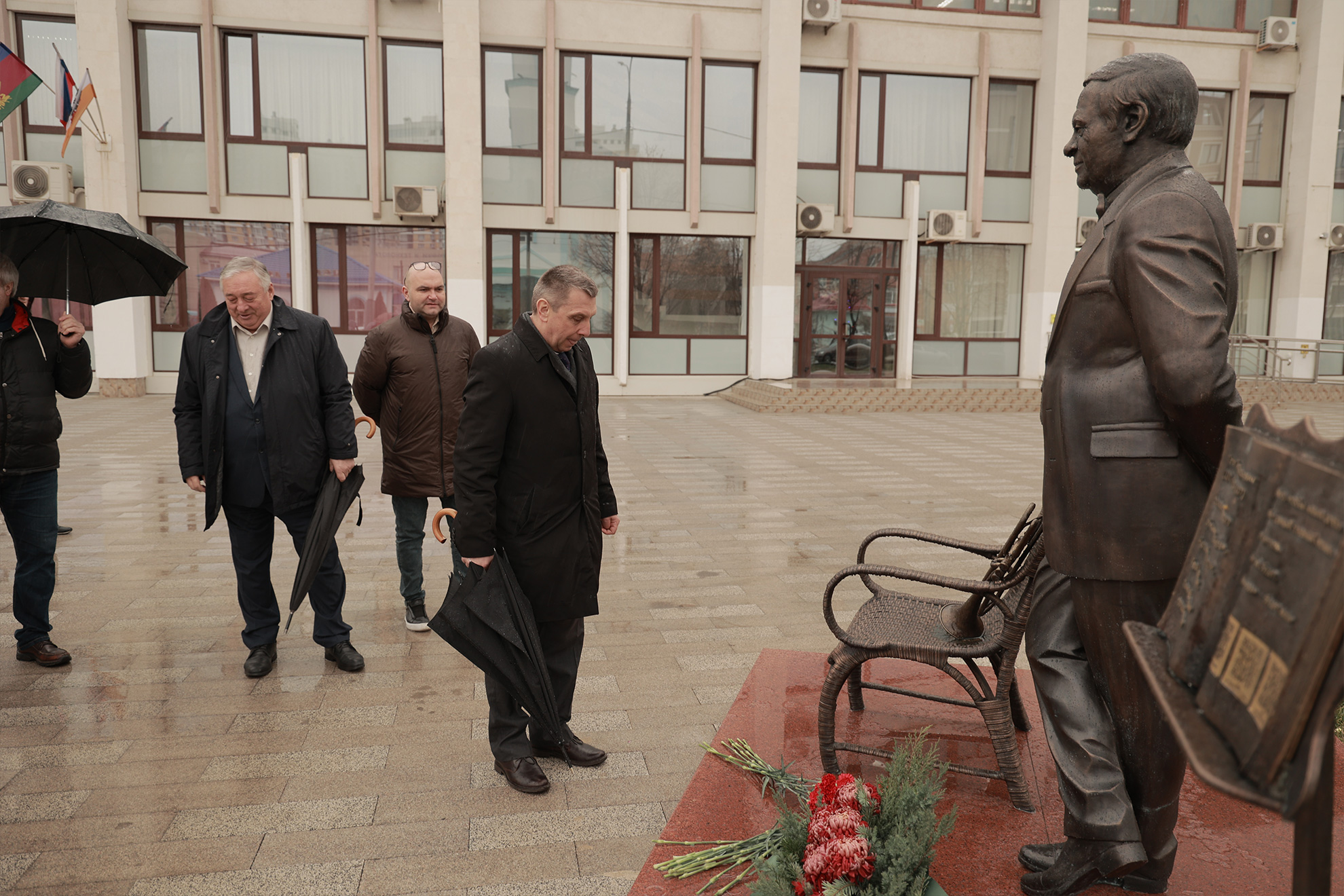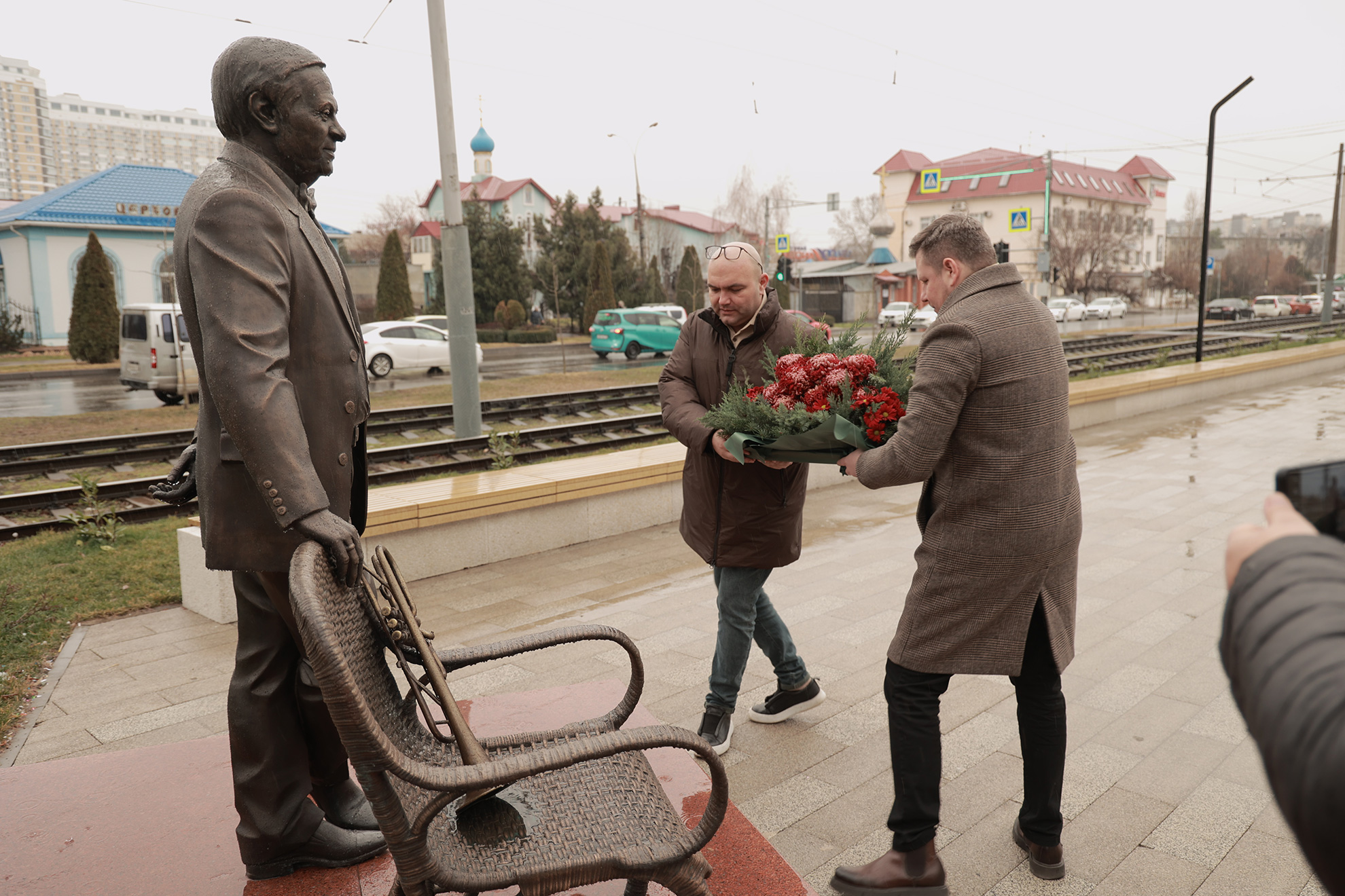 Дождь – не помеха для цветов и аплодисментов создателю «Премьеры». Поздравить бронзового именинника пришли глава администрации Карасунского внутригородского округа МО г. Краснодар Николай Хропов, артисты «Премьеры» во главе с генеральным директором Ильёй Филипповым, друзья и коллеги режиссёра и продюсера. Подходили зрители, спешащие на Новогоднюю фантазию-30, жители Карасунского округа.