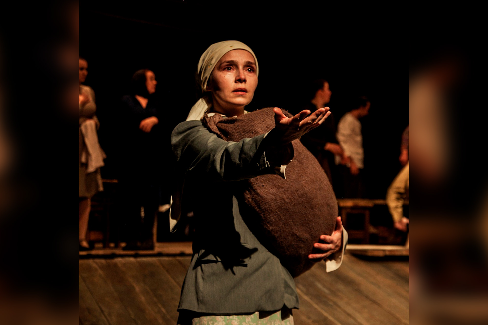 «Материнское поле» по повести Чингиза Айтматова – из тех спектаклей, которые не оставляют равнодушными никого. Историю Толгонай, её мужа Суванкула, трёх её сыновей, невестки, внука, далёкого степного аила и всей Земли рассказал режиссёр-постановщик Даниил Безносов. Поэтическую реальность для нас создали художник Настя Васильева и художник по свету Руслан Майоров. Музыку (нежное треньканье струн, созвучное нашим эмоциям) написал композитор Артём Тульчинский.