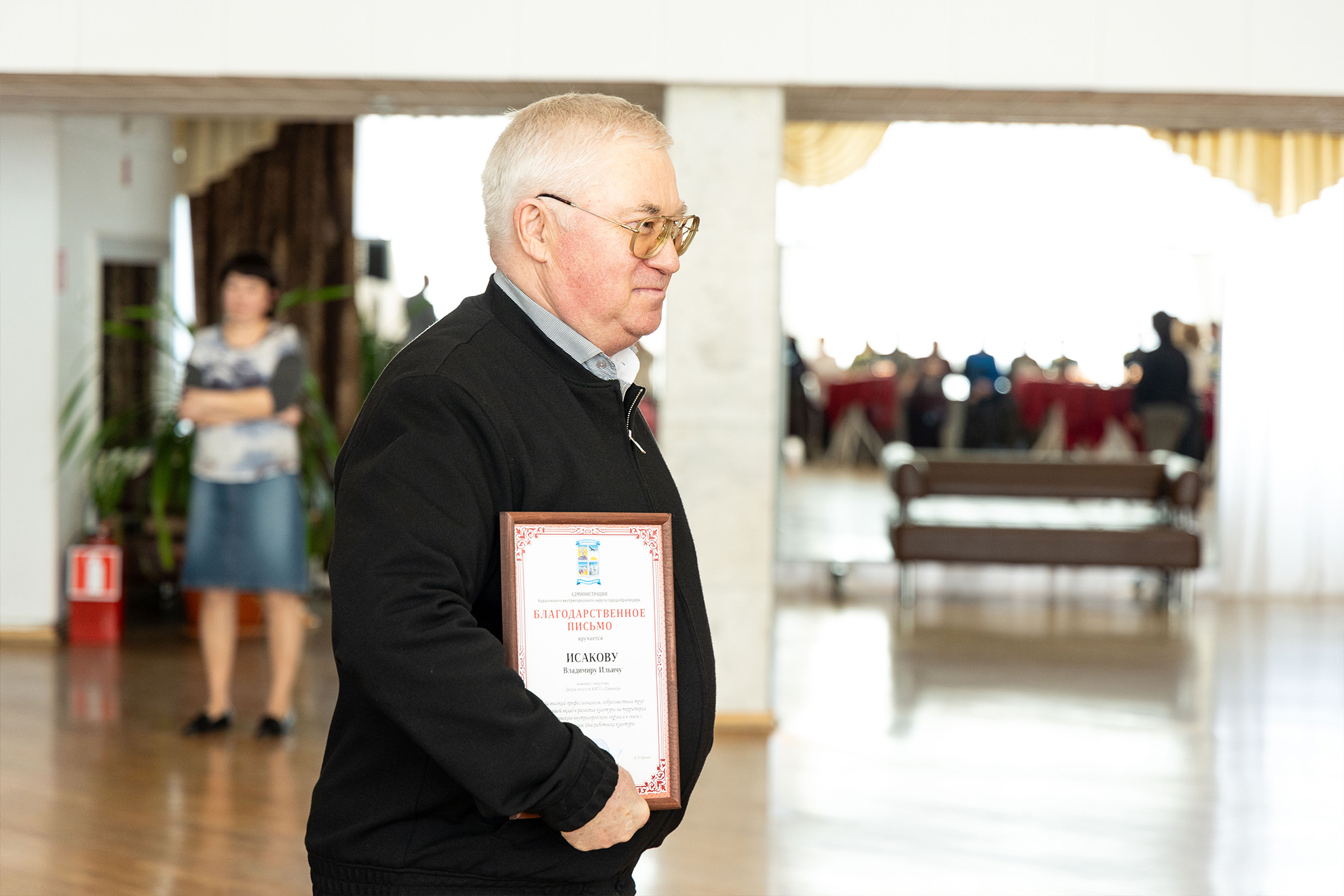 А накануне работников культуры награждали грамотами и благодарственными письмами в администрации Карасунского внутригородского округа г. Краснодара. «Досталось» и служителям Дворца искусств! Это люди, много лет проработавшие в «Премьере» и преданные ей душой и телом, совесть Дворца искусств: директор Дворца искусств Игорь Вячеславович Стряпан, инженер-энергетик Владимир Ильич Исаков, начальник службы по ремонту и обслуживанию Дворца искусств Александр Григорьевич Левков, начальник хозяйственного отдела Татьяна Владимировна Фоменко. Честь им и хвала!