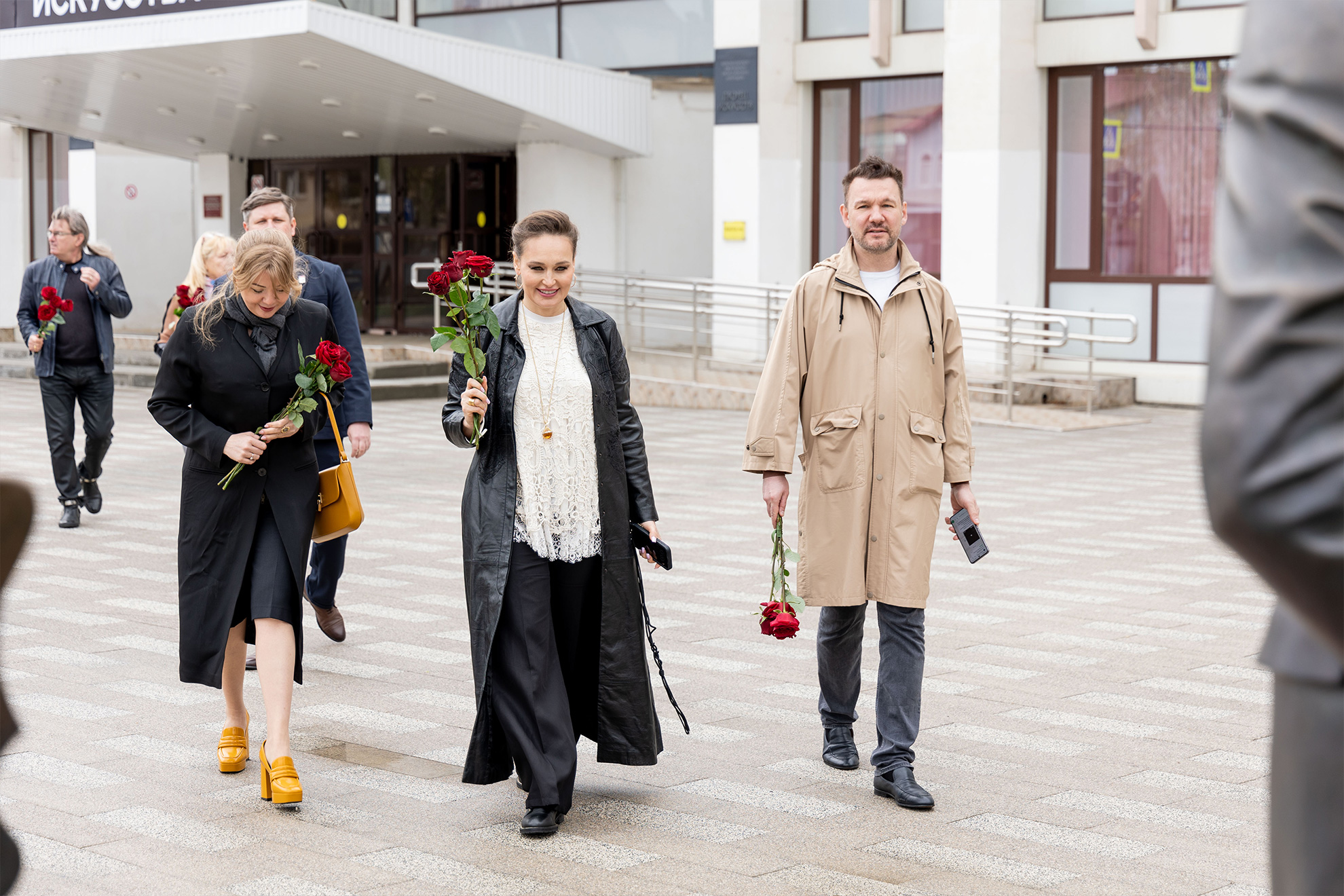А следом делегация высоких гостей отправилась к другу и сподвижнику Иосифа Давыдовича – Леонарду Григорьевичу, тоже бронзовому, и тоже народному артисту. К памятнику основателю «Премьеры» Леонарду Гатову, который с конца прошлого года стал сердцем, душой и камертоном площади у Дворца искусств, носящей его имя.