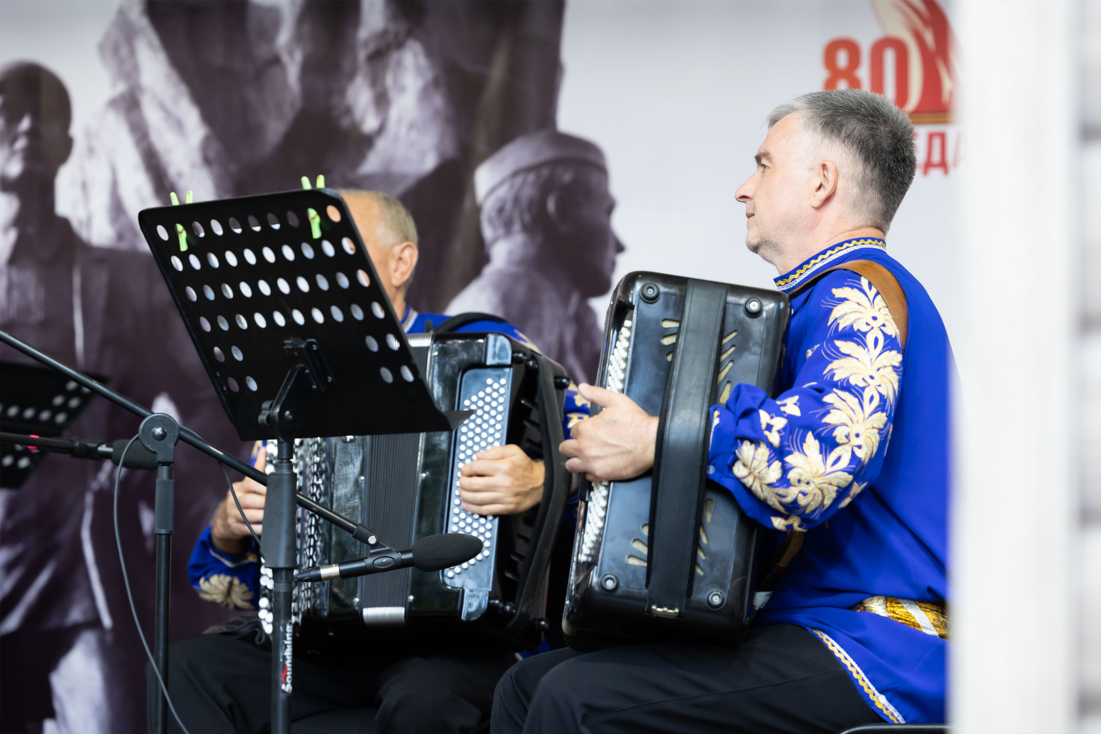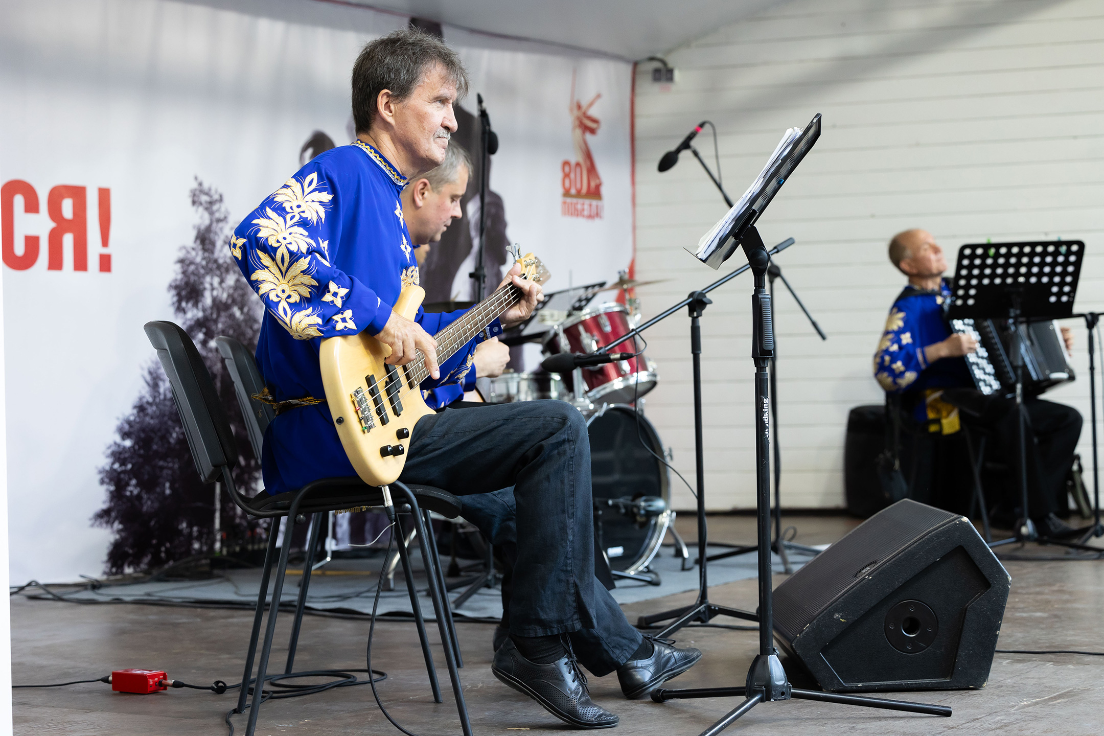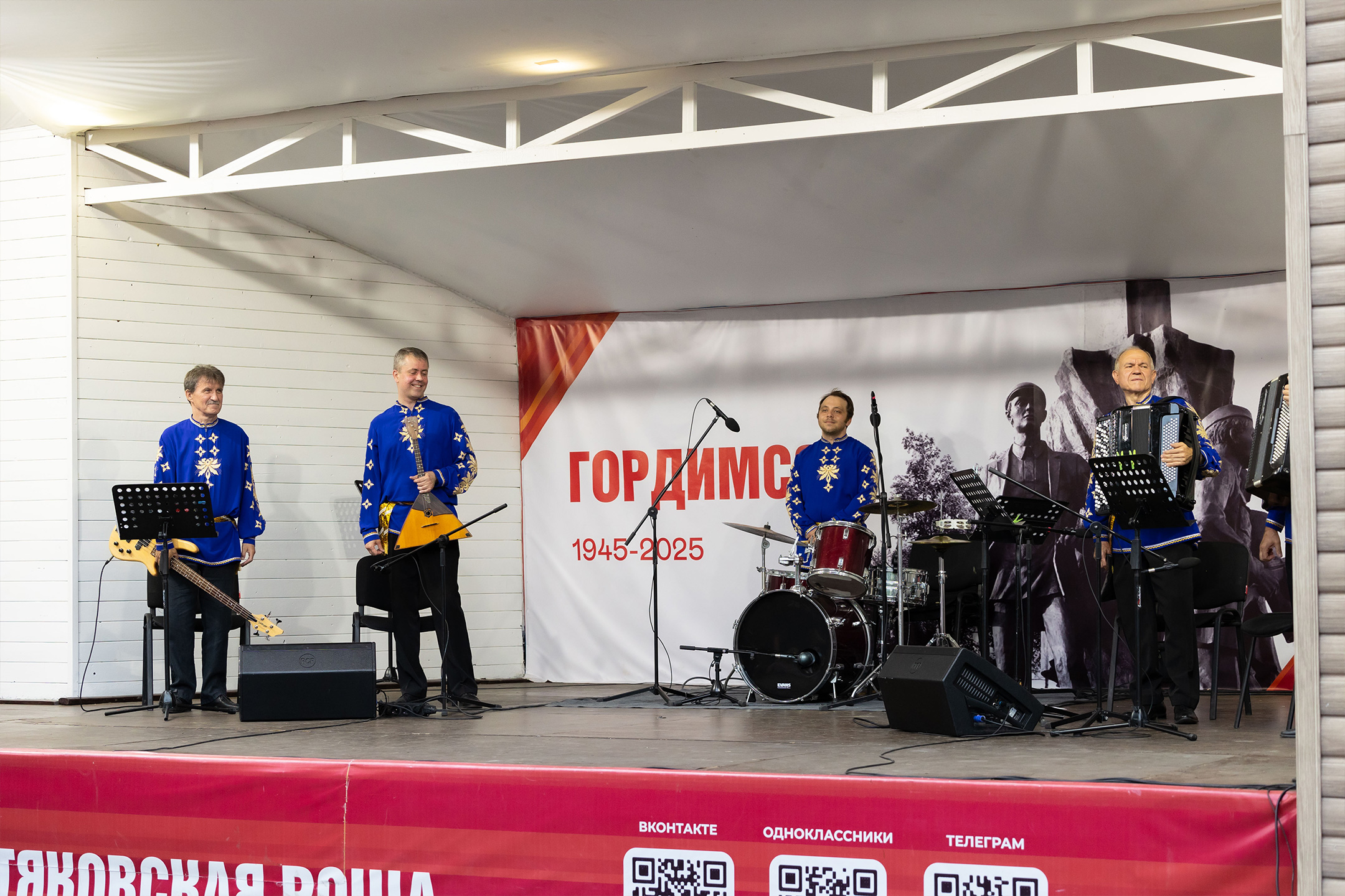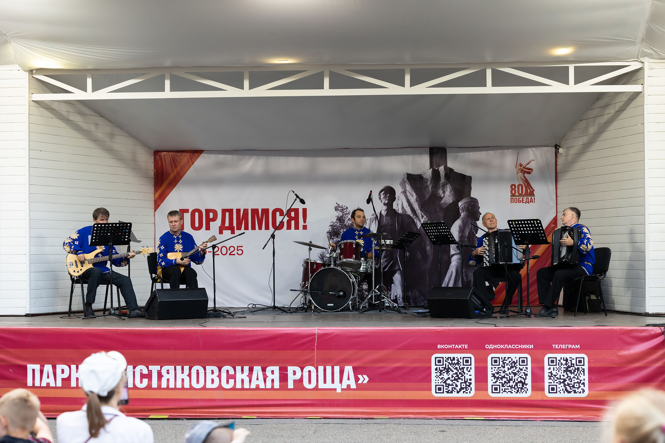 Концерт под открытым небом открыла «Смуглянка» А. Новикова в обработке С. Войтенко. Вторым номером прозвучала виртуозная пьеса «Вивальдиссимо» – наш ответ создателю жанра инструментального концерта Антонио Вивальди, который никогда не писал для двух баянов, балалайки, бас-гитары и ударных.