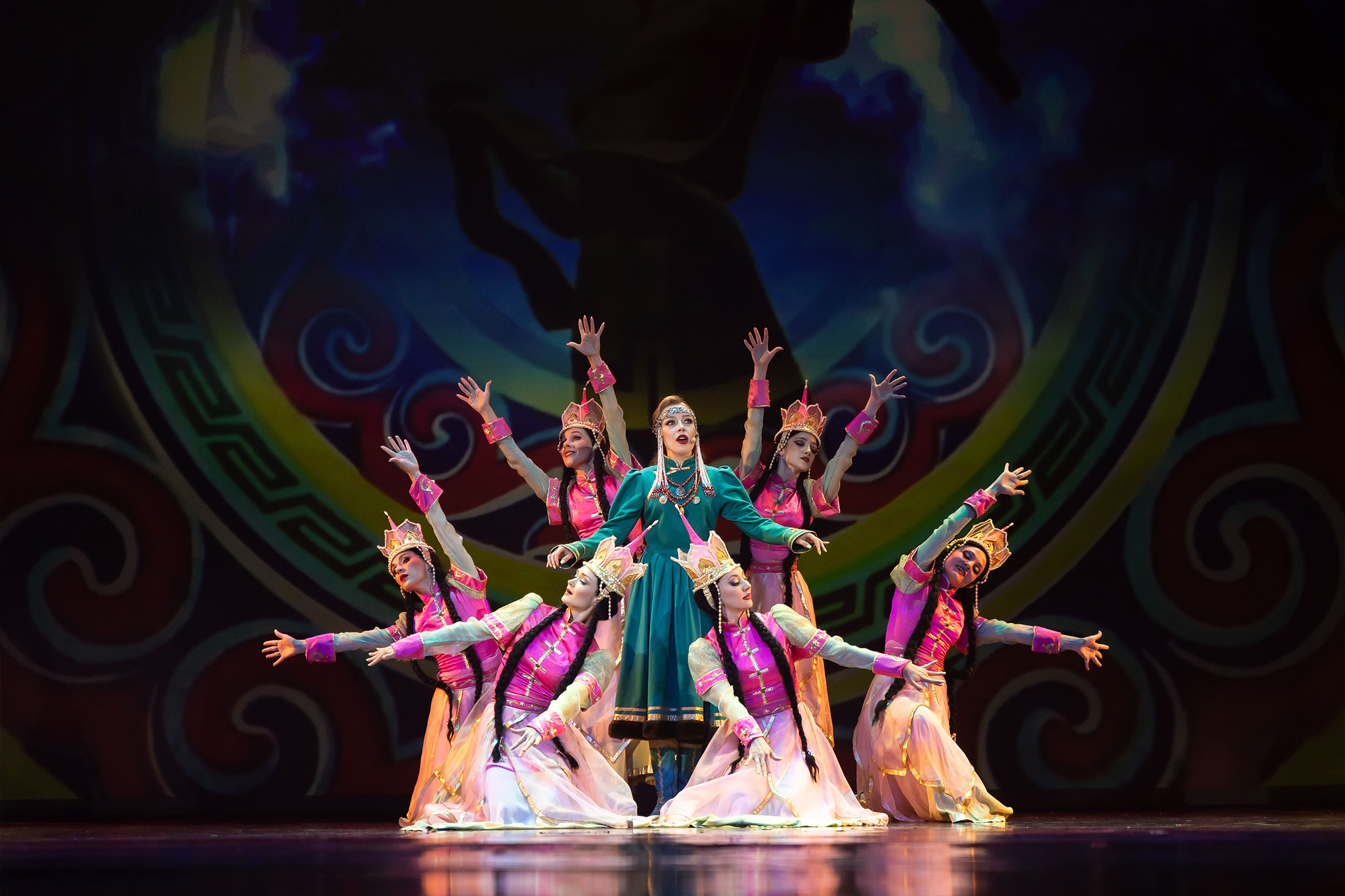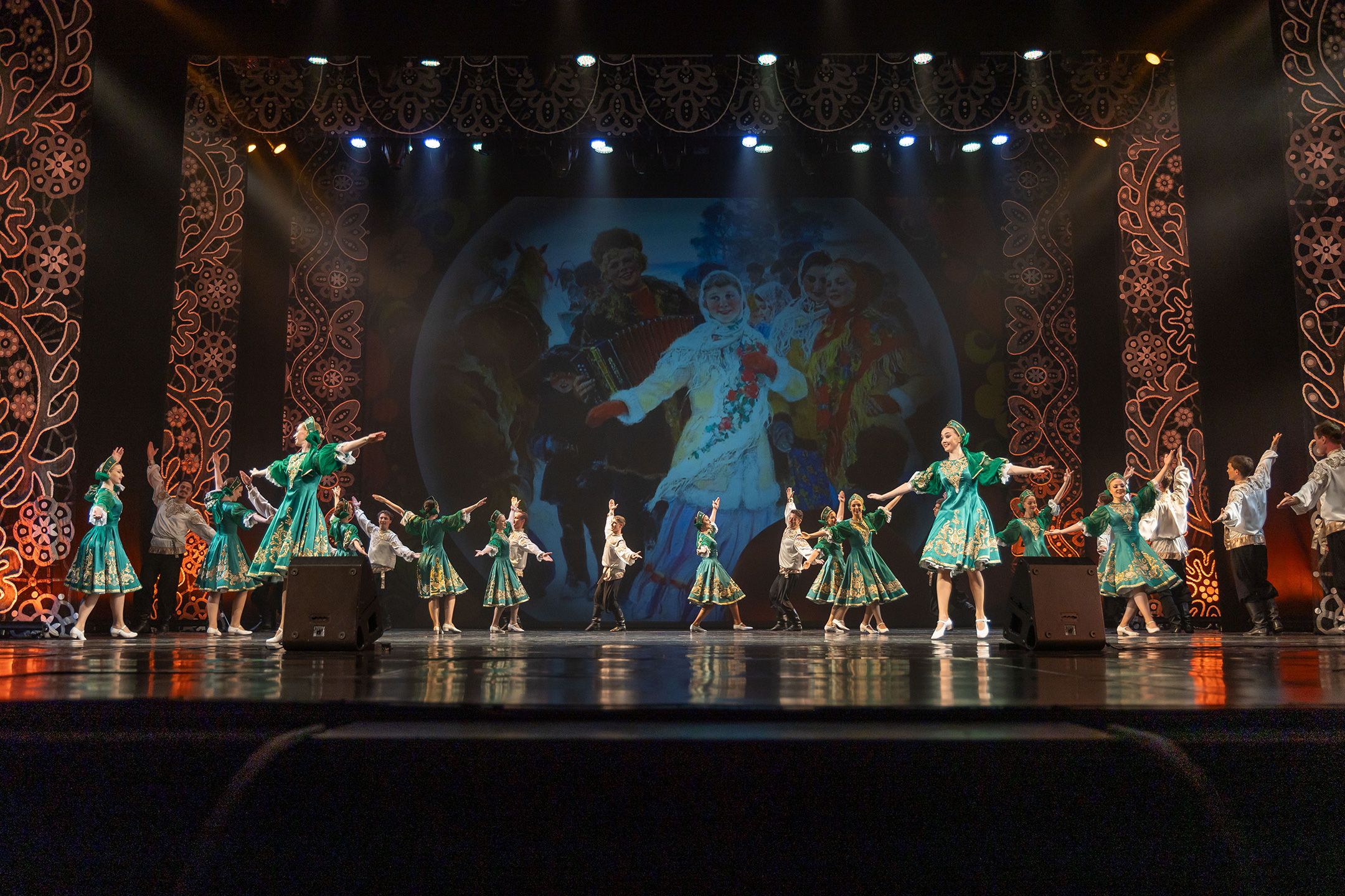 Ведущие отечественные и зарубежные хореографы работали над ней! Плавный хоровод здесь сменяется горячим «Цыганским», нежный «Цветок Бурятии» чередуется с «Чаем по-русски» из самовара, задорным калмыцким «Чичирдык», экзотическими «Ритмами Севера» и азартным «Казачьим плясом». Прозвучали популярные песни отечественных и зарубежных композиторов в современной аранжировке.