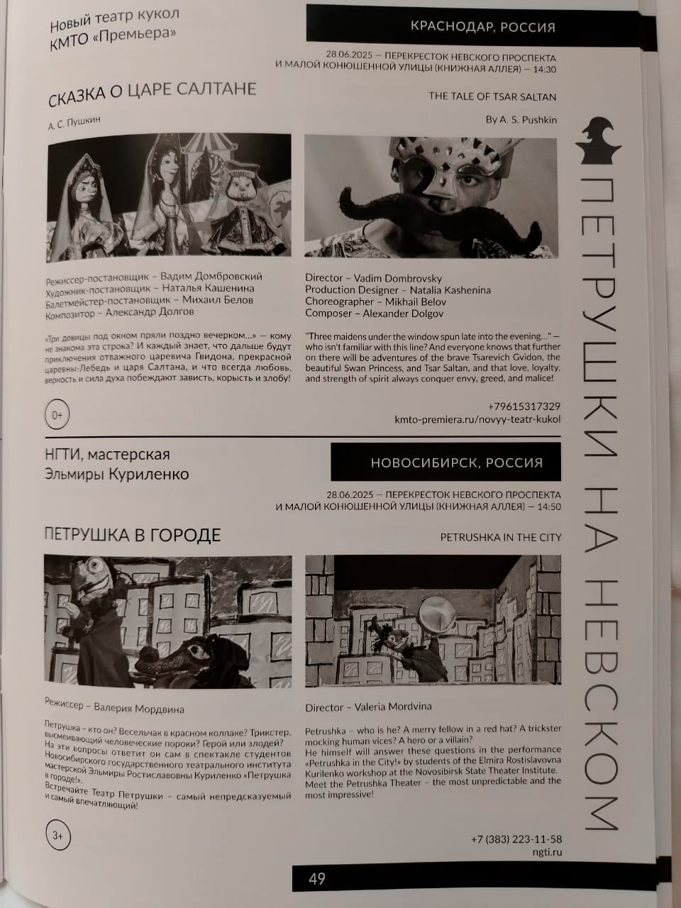 Мы показали спектакль «Сказка о царе Салтане» В. Домбровского и стали лауреатами в рамках специальной программы «Петрушки на Невском». Это было невероятное событие, наполненное творческой энергией и яркими впечатлениями.