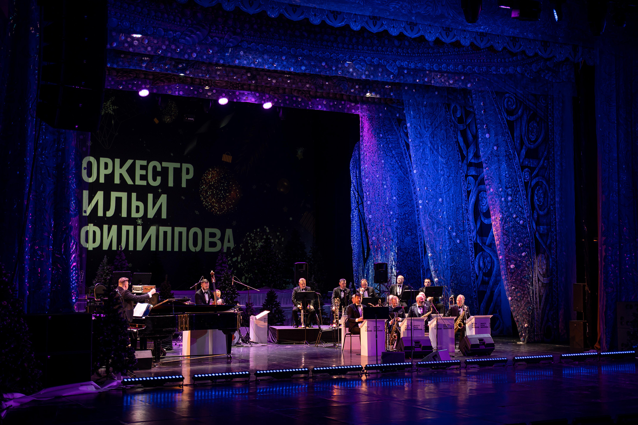 В самый уютный праздник Эстрадно-джазовый Оркестр Ильи Филиппова приглашает друзей на концерт. В роли Деда Мороза – руководитель коллектива заслуженный артист Краснодарского края Илья Филиппов, чьё остроумие, мастерство пианиста-виртуоза и лидера большого оркестра продолжает привлекать всё больше любителей джазовой музыки.