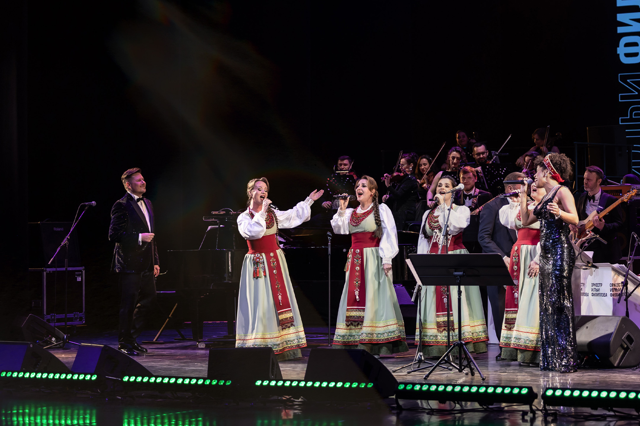 Второе отделение принесло немало сюрпризов. Солист Юрий Шматов посвятил выступление Стиви Вандеру. Поздравить родной оркестр с днём рождения приехал Роберт Бабаев. С неподражаемым обаянием и артистизмом он исполнил «Пароход» Леонида Утёсова. Нотку аутентичности привнесла в концерт прекрасная гостья – певица Фантин. Ах, как чувственно, как страстно она исполнила Como un bolero – так, что перевод с испанского оказался не нужен! Кульминацией концерта стало выступление женской группы ансамбля «Родник» с песнями «Дуняша» и «Пойду плясать». Фантин, чью кудрявую голову украсил кокошник, с удовольствием разделила нехитрые, но такие азартные радости русских женщин!