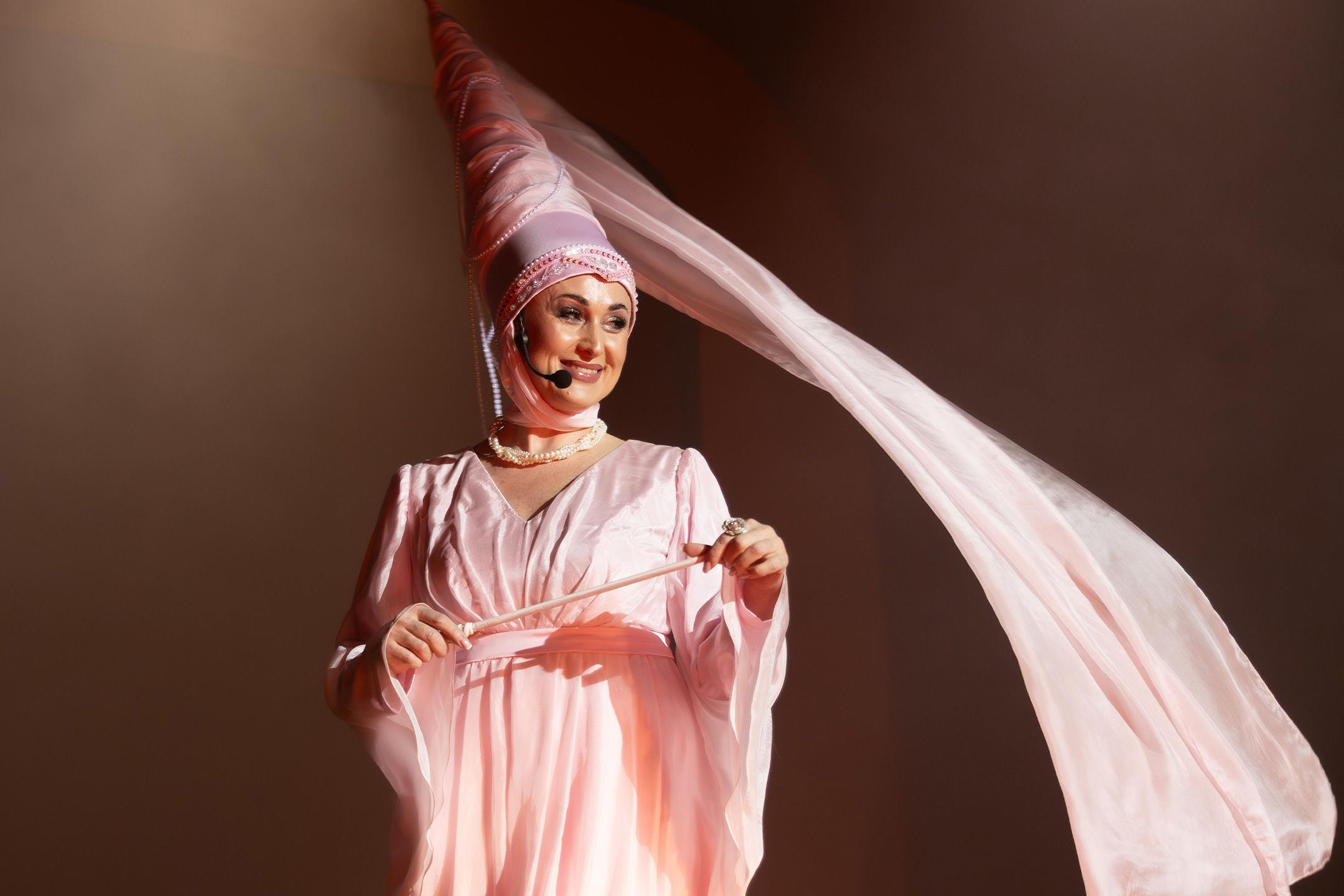 Оказывается, вся эта история случилась во сне. Или в сказке, рассказанной на ночь девочке Элли из Канзаса (которая умеет дружить и печь пироги) её папой, по совместительству Гудвином (артисты Виктория Кузнецова и заслуженный артист Краснодарского края Виктор Плужников). В сказке Элли с Тотошкой (заслуженная артистка Краснодарского края Елена Дементьева) нечаянно убивают злую колдунью Гингему и девочке достаются волшебные туфельки, свойств которых не знает даже добрая волшебница Виллина (она же мама Элли – заслуженная артистка Краснодарского края Оксана Трегубова).