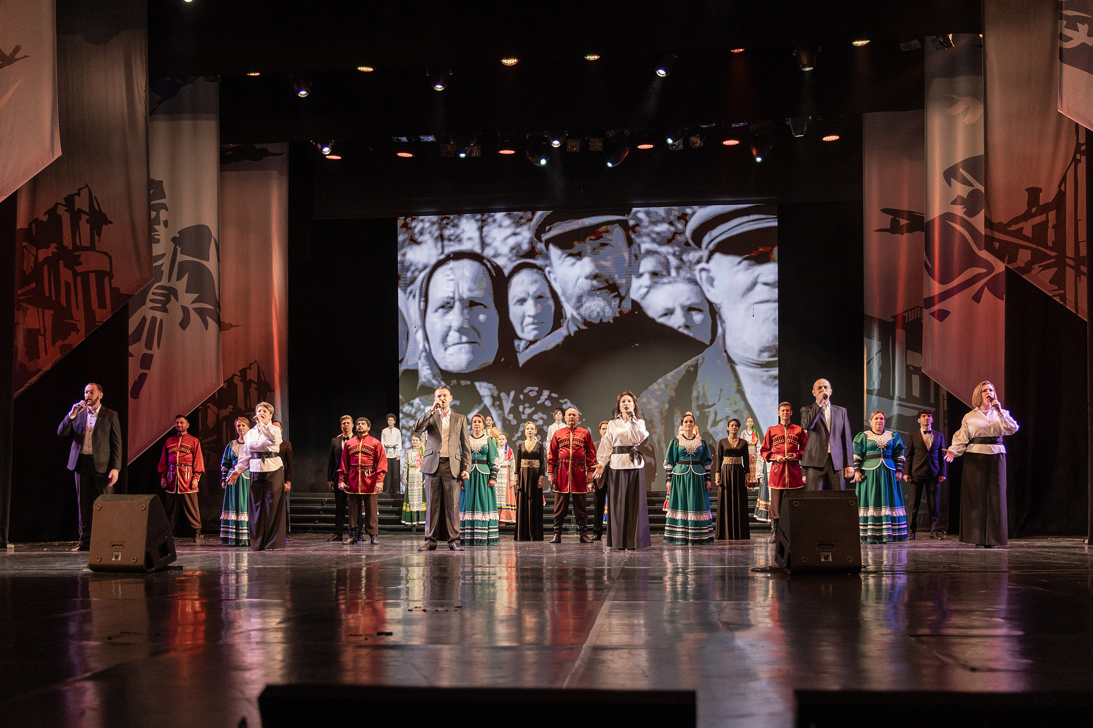 Концерт был торжественным и душевным. Весь вечер на сцене были ведущие Анастасия Нагайкина и Константин Петрушин. Отблеск Победы звучал в марше «Салют героям»! Его исполнили Русский вокально-хореографический ансамбль «Родник», Музыкальный шоу-театр «Премьера», детский народный хор «Горница» и капелла мальчиков «Премьер» ДШИ им. С.В. Рахманинова, участники движения Пост №1 г. Краснодара. Пронзительно звучали слова «Краснодарской были» Виталия Бакалдина – о юных защитниках Пашковской переправы, которые «полегли поклассно и пошкольно», приняв на себя первый удар врага. Стихи кубанского поэта исполнили артисты Молодёжного театра Мария Якубец, Эвелина Слободянюк, Владислав Гоголев, артист Антон Щербинин. После вокальной композиции «Тише» в исполнении солиста Музыкального шоу-театра «Премьера» Юрия Тишина звуки метронома провозгласили минуту молчания.