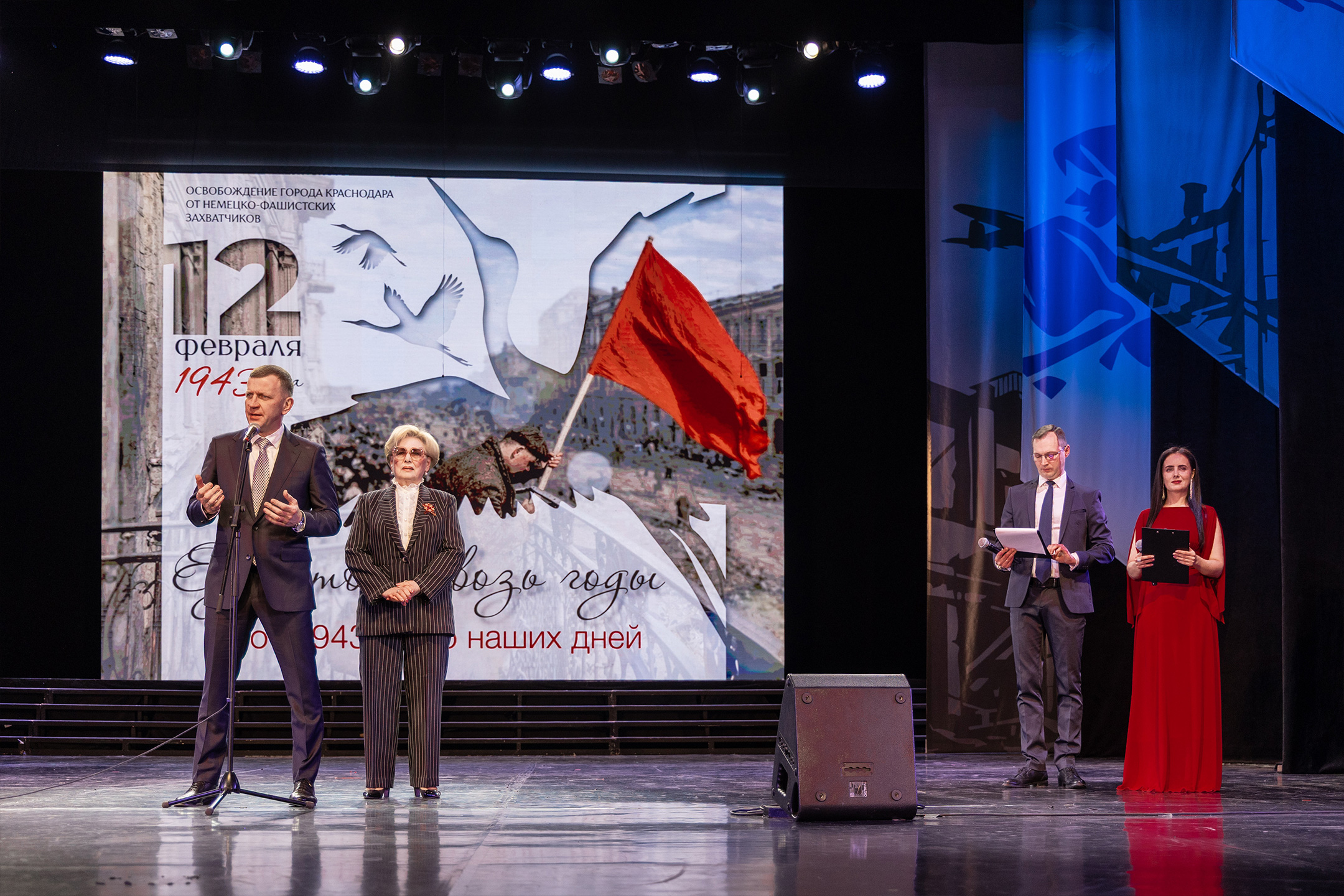 Высокий тон концерту задали глава муниципального образования город Краснодар Евгений Наумов и председатель Городской Думы города Краснодара Вера Галушко. Они сердечно поздравили горожан с 83-й годовщиной освобождения Краснодара, были вручены награды и памятные знаки. В числе награждённых званием «Почётный гражданин города Краснодара» оказалась главный редактор информационного агентства RT Маргарита Симоньян. Известный журналист тепло поблагодарила Евгения Михайловича и Веру Фёдоровну с наградой и сказала, что она для неё одна из самых ценных.